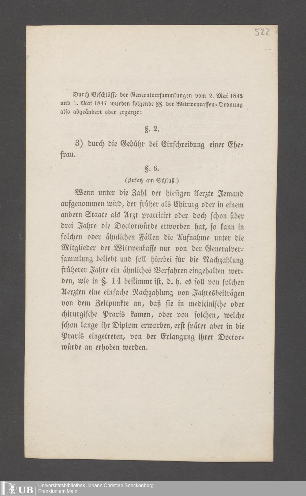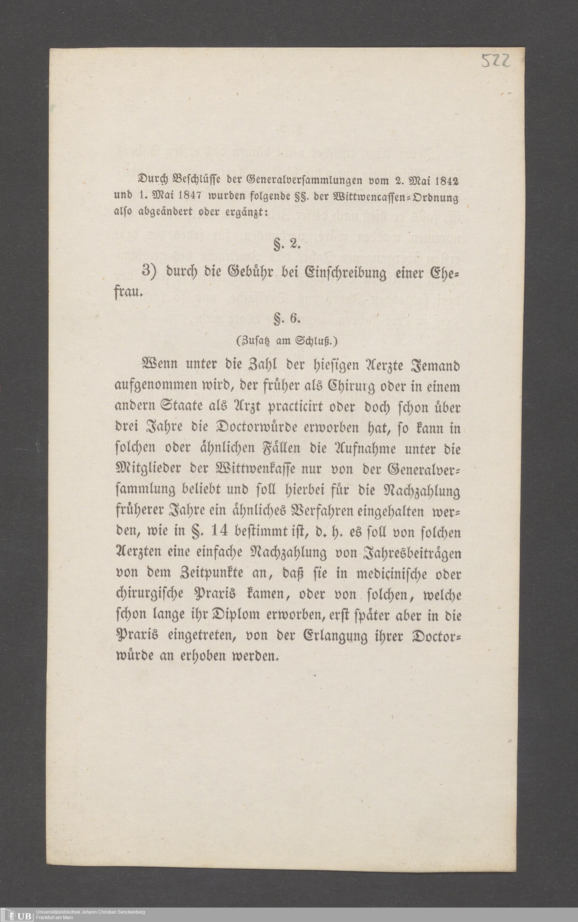 B 5 Dr. Senckenbergische Stiftung, 145 - Witwenkasse VII
