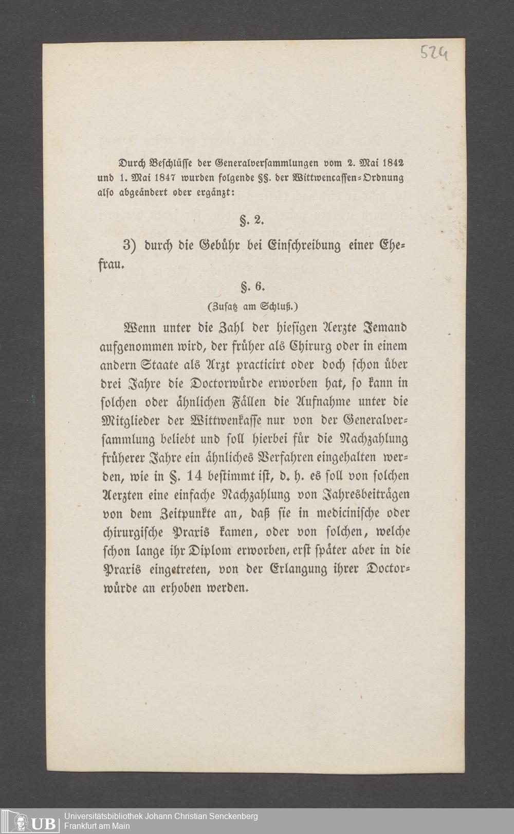 B 5 Dr. Senckenbergische Stiftung, 145 - Witwenkasse VII