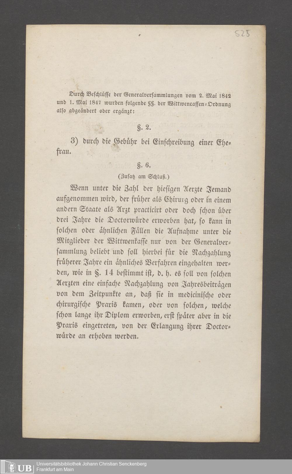 B 5 Dr. Senckenbergische Stiftung, 145 - Witwenkasse VII