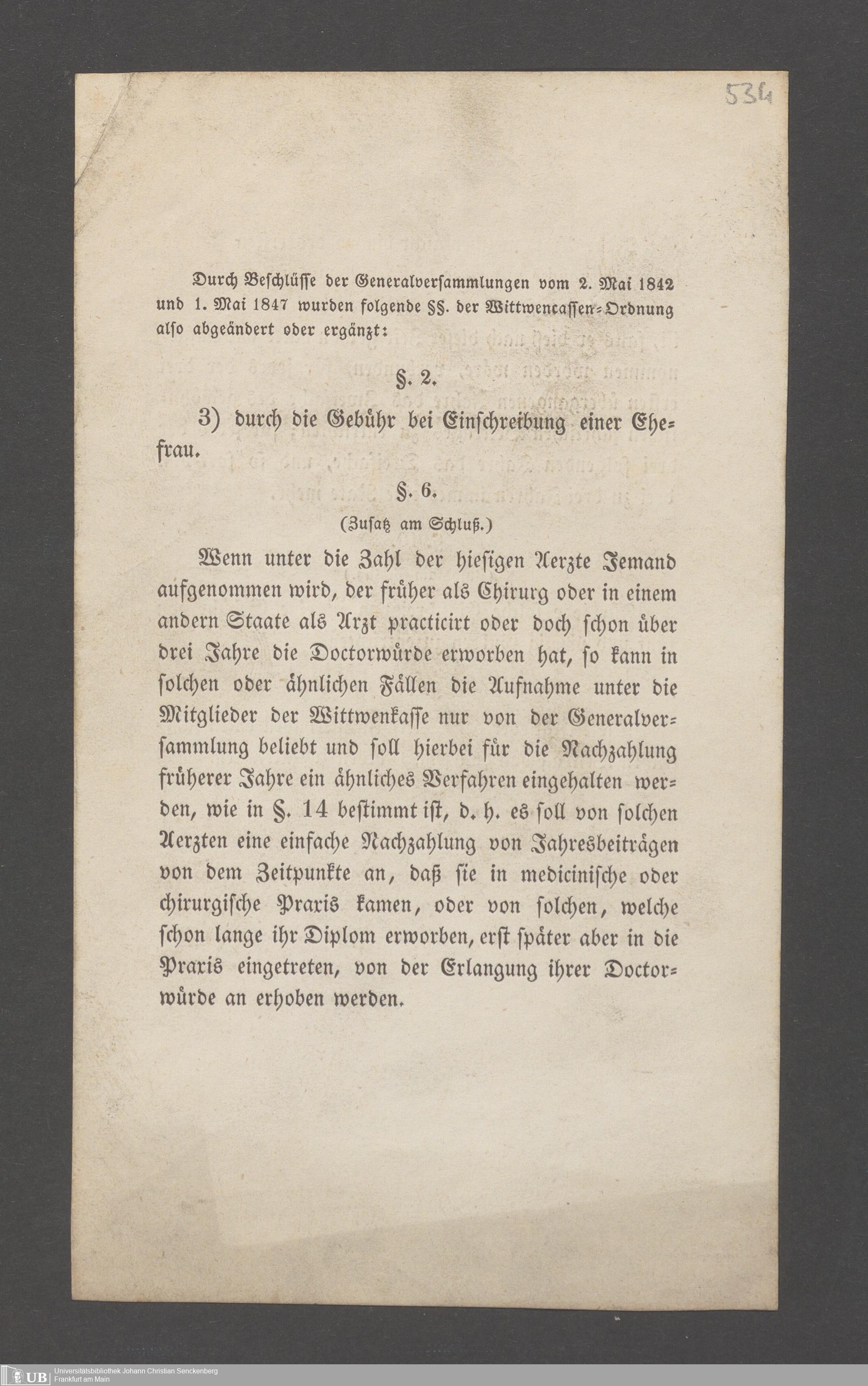 B 5 Dr. Senckenbergische Stiftung, 145 - Witwenkasse VII