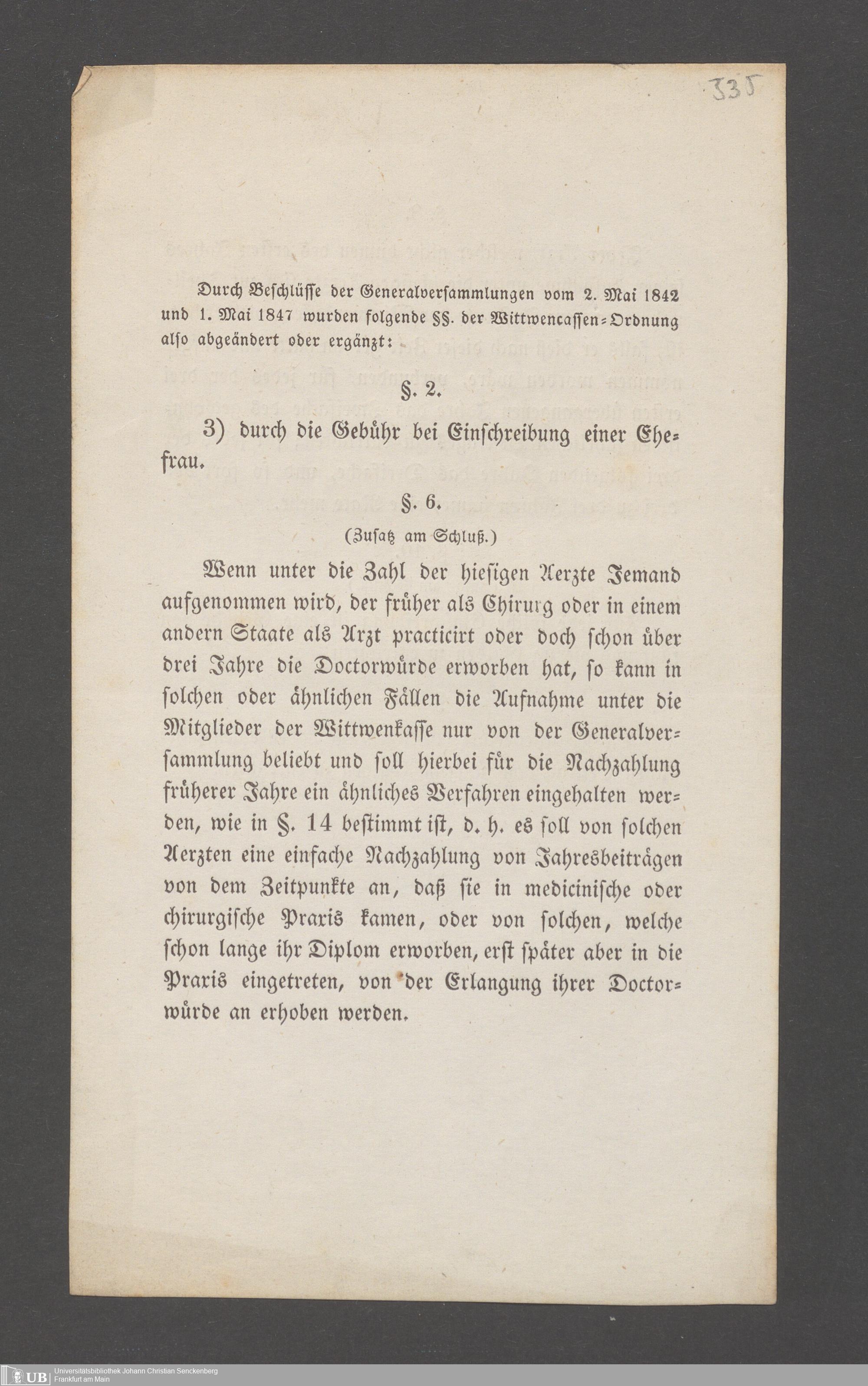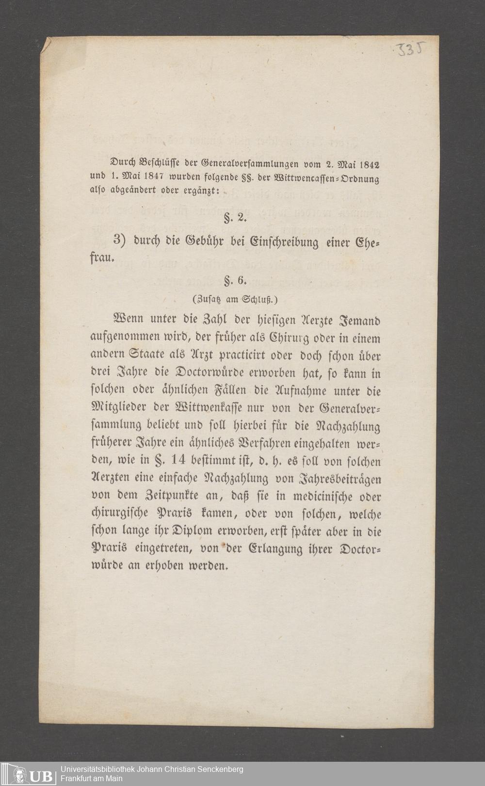 B 5 Dr. Senckenbergische Stiftung, 145 - Witwenkasse VII
