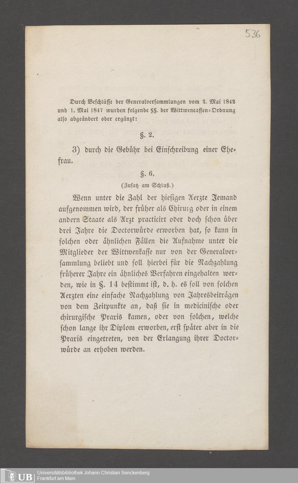 B 5 Dr. Senckenbergische Stiftung, 145 - Witwenkasse VII