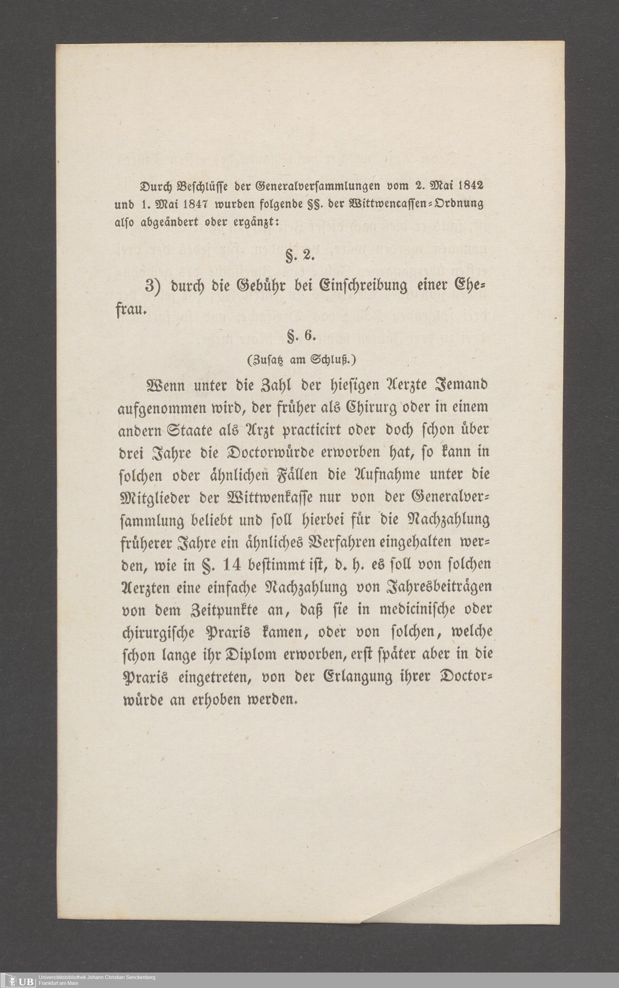 B 5 Dr. Senckenbergische Stiftung, 145 - Witwenkasse VII
