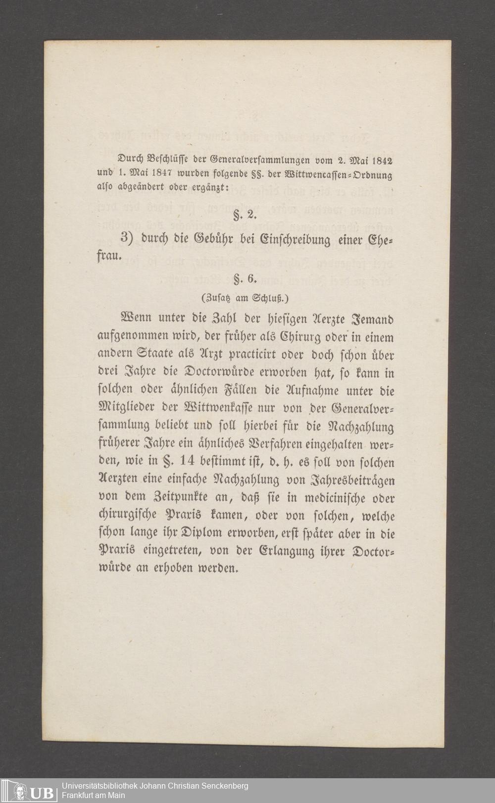 B 5 Dr. Senckenbergische Stiftung, 145 - Witwenkasse VII