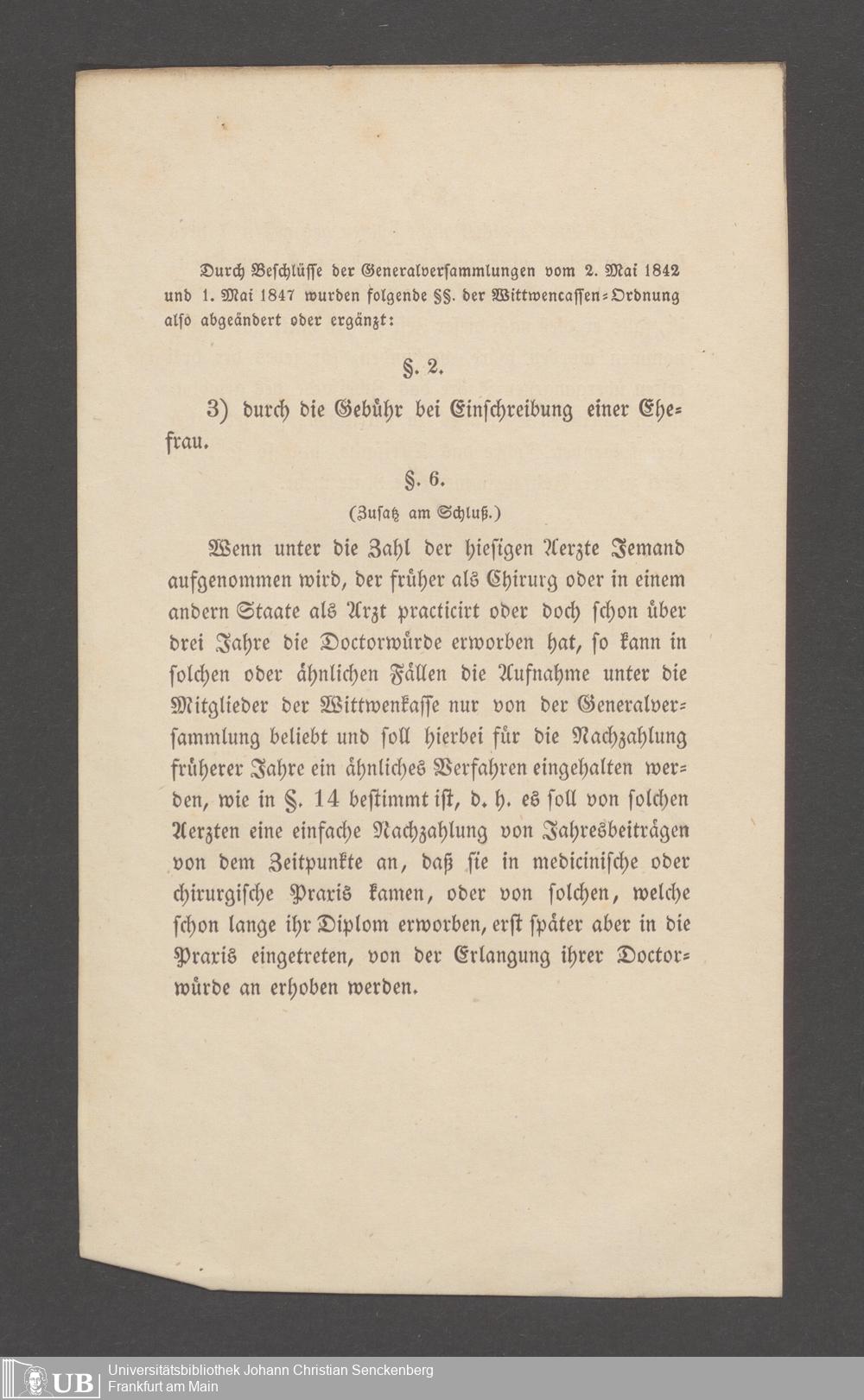 B 5 Dr. Senckenbergische Stiftung, 145 - Witwenkasse VII