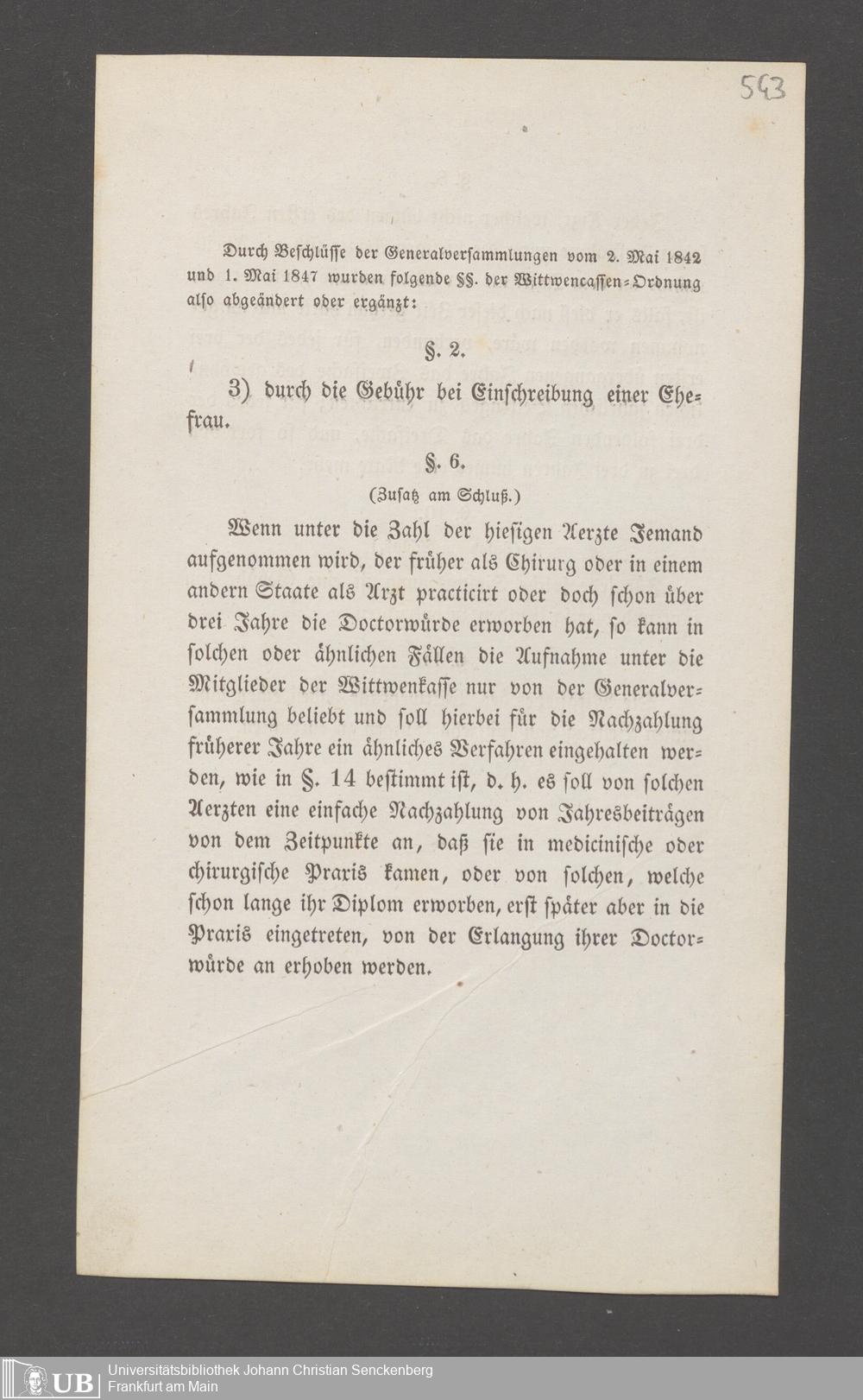 B 5 Dr. Senckenbergische Stiftung, 145 - Witwenkasse VII