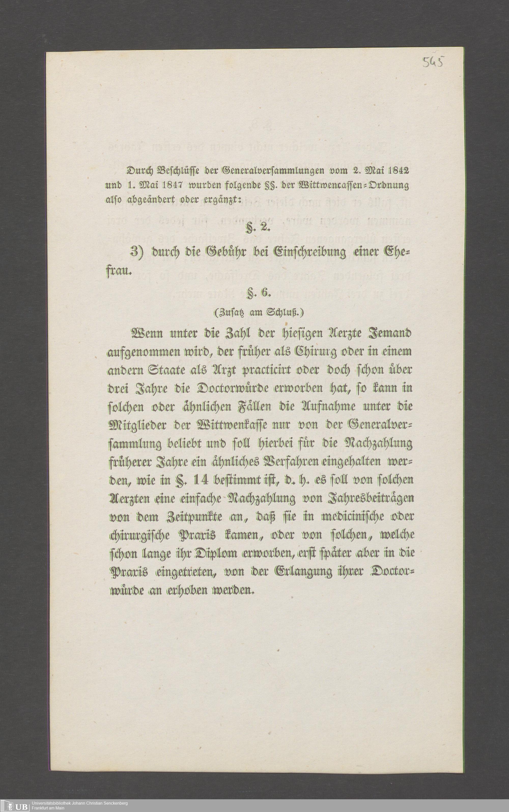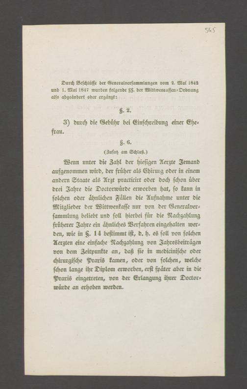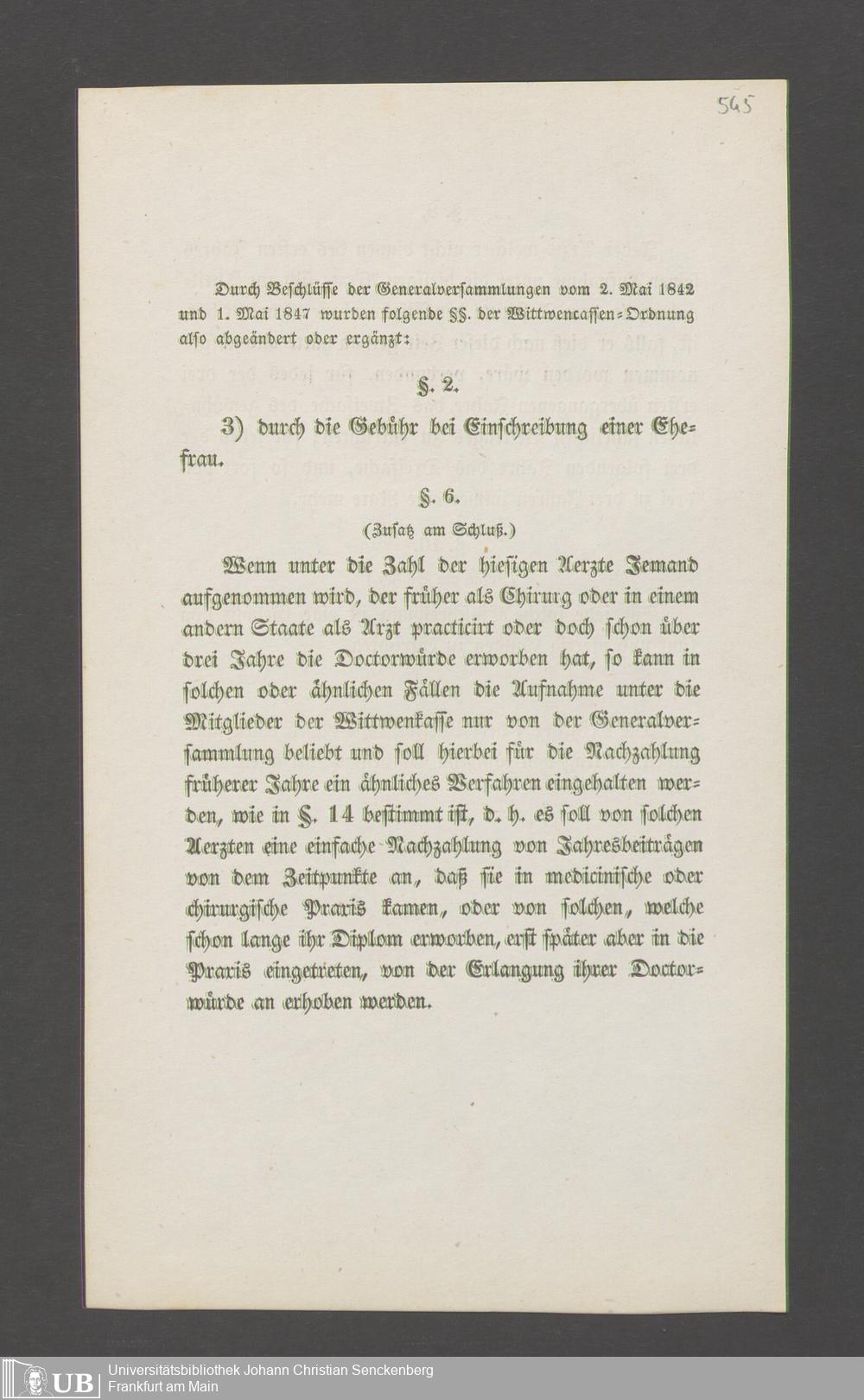 B 5 Dr. Senckenbergische Stiftung, 145 - Witwenkasse VII