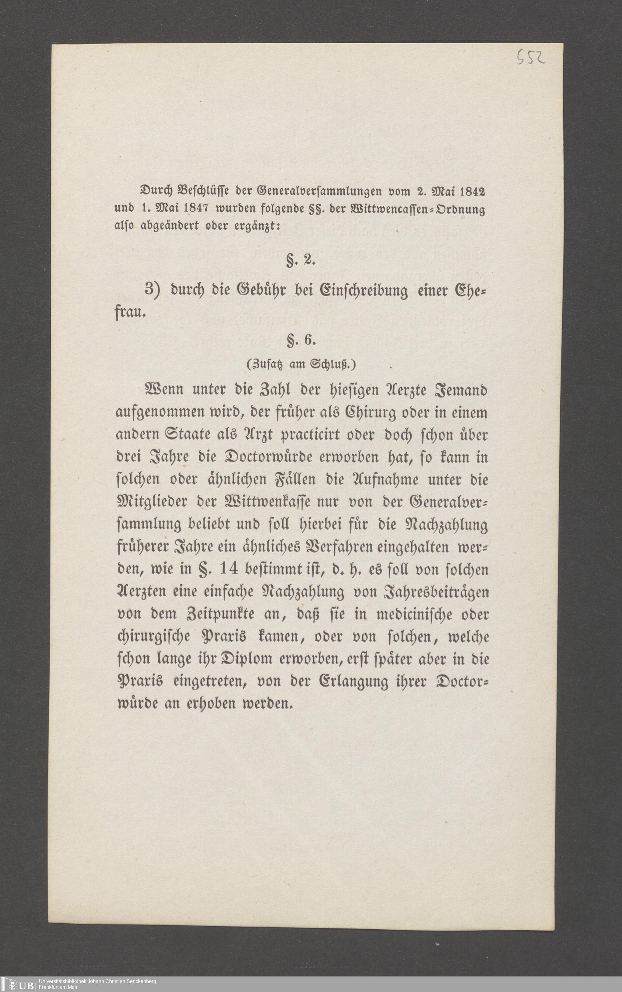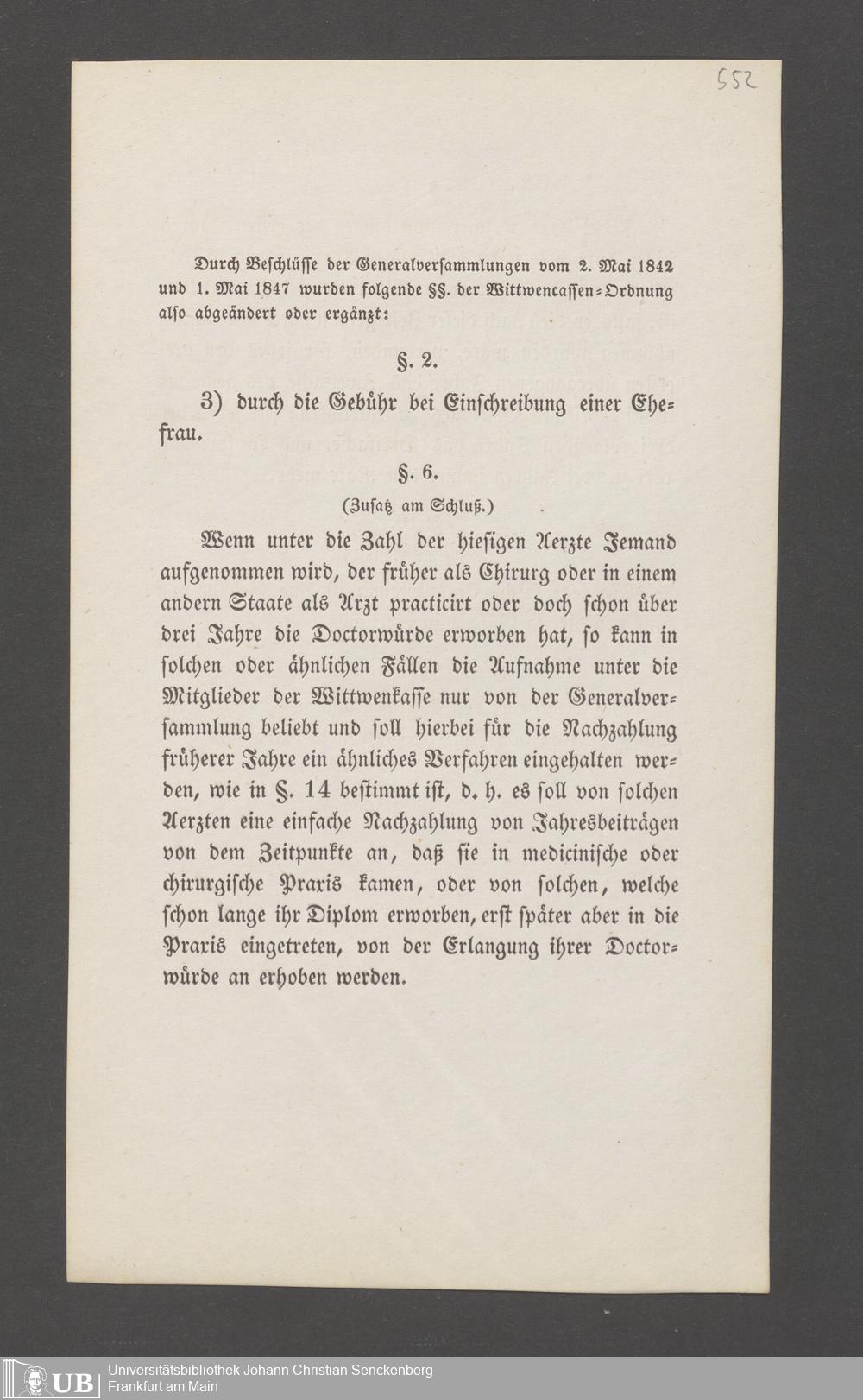B 5 Dr. Senckenbergische Stiftung, 145 - Witwenkasse VII