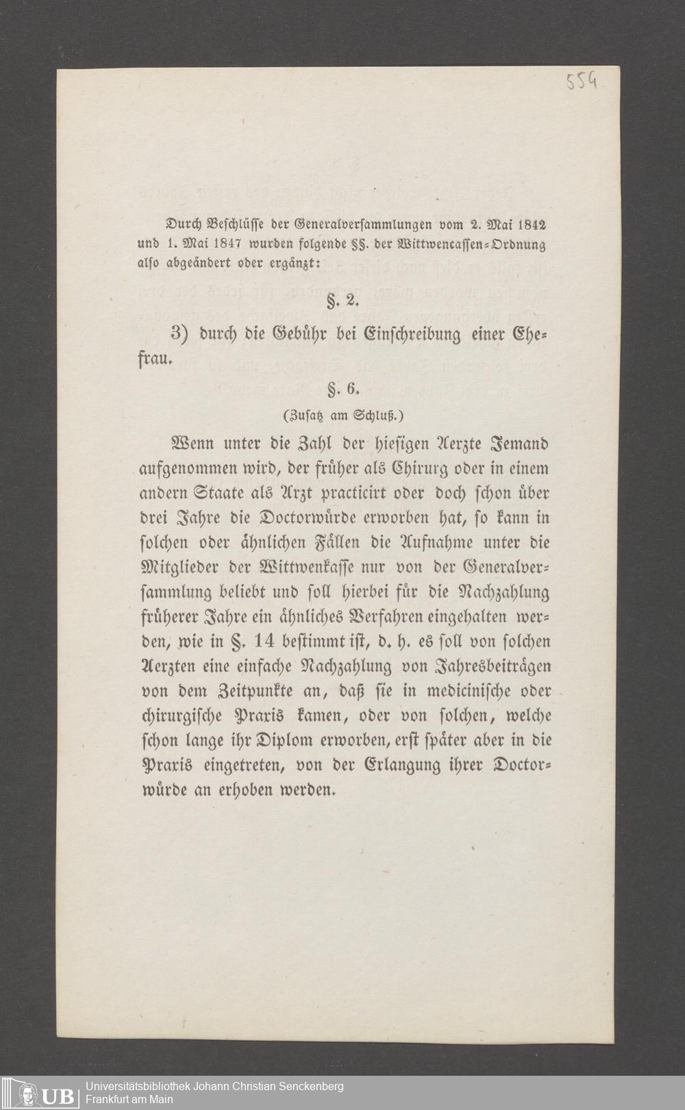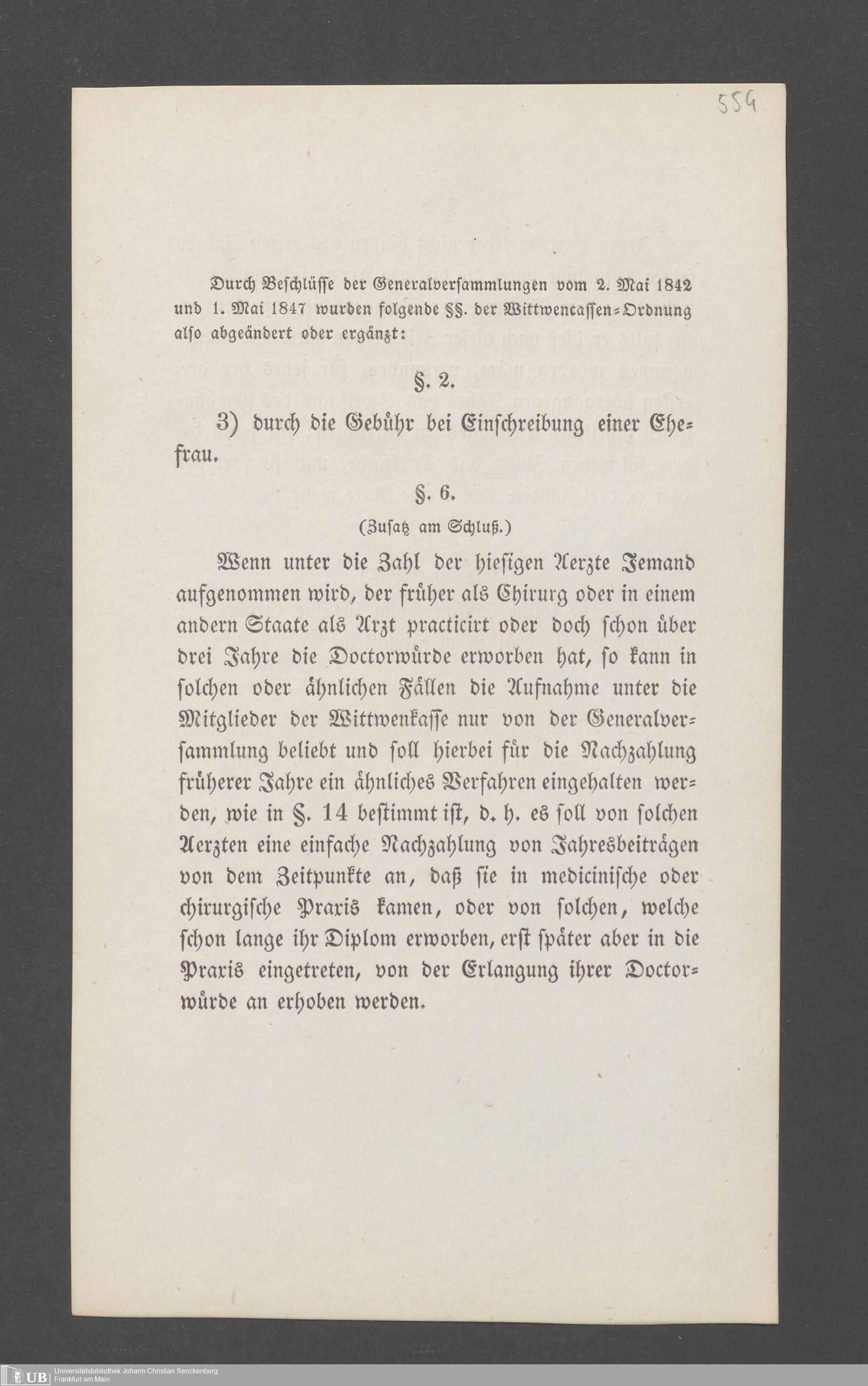 B 5 Dr. Senckenbergische Stiftung, 145 - Witwenkasse VII