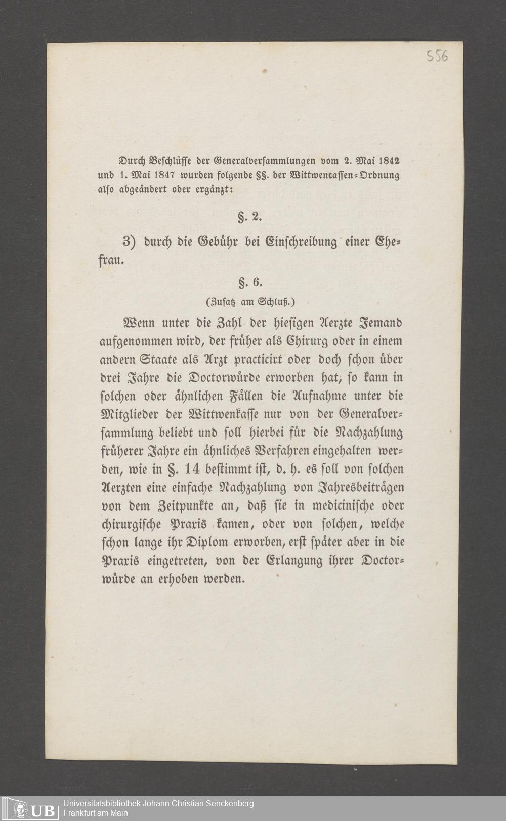B 5 Dr. Senckenbergische Stiftung, 145 - Witwenkasse VII