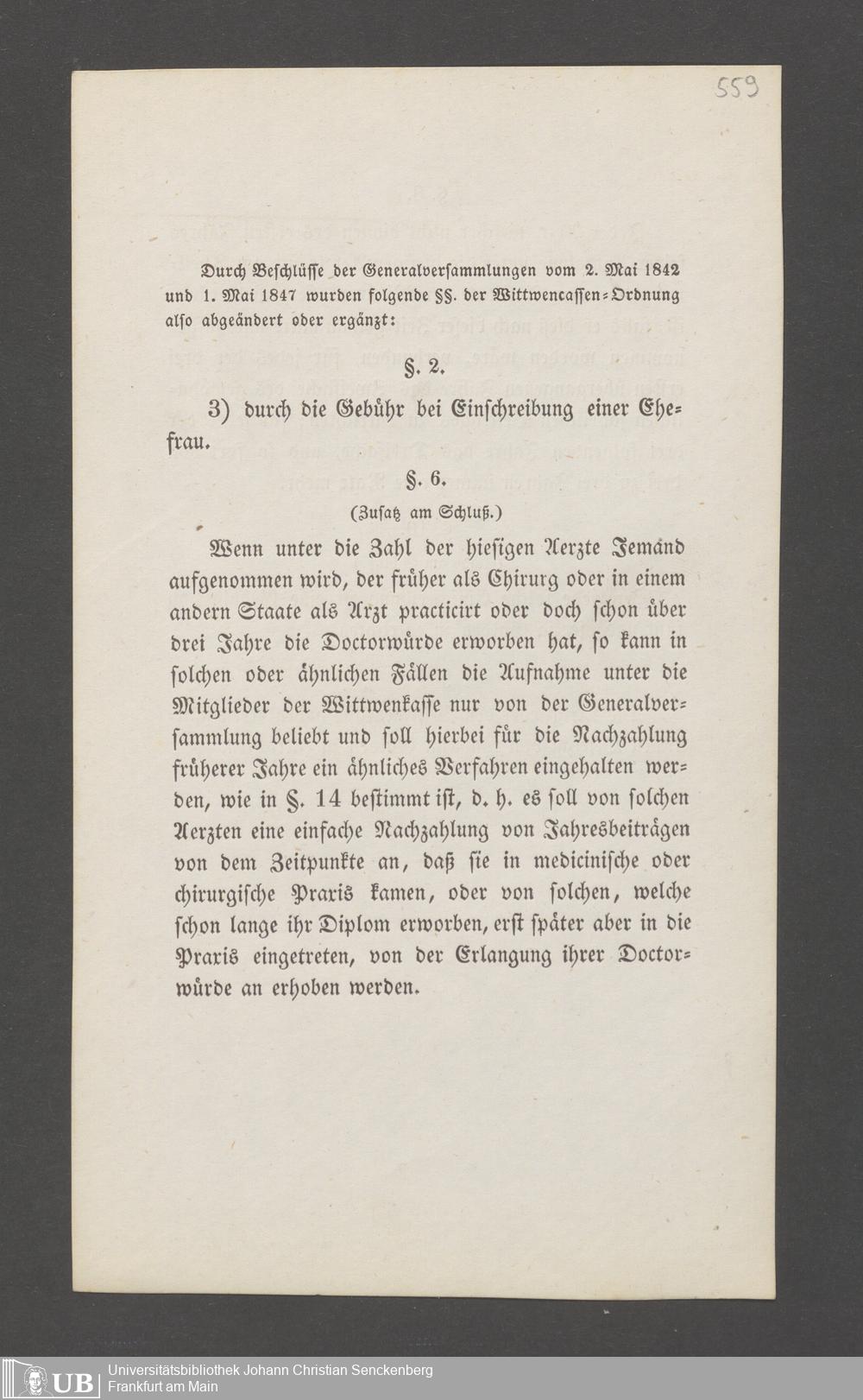 B 5 Dr. Senckenbergische Stiftung, 145 - Witwenkasse VII