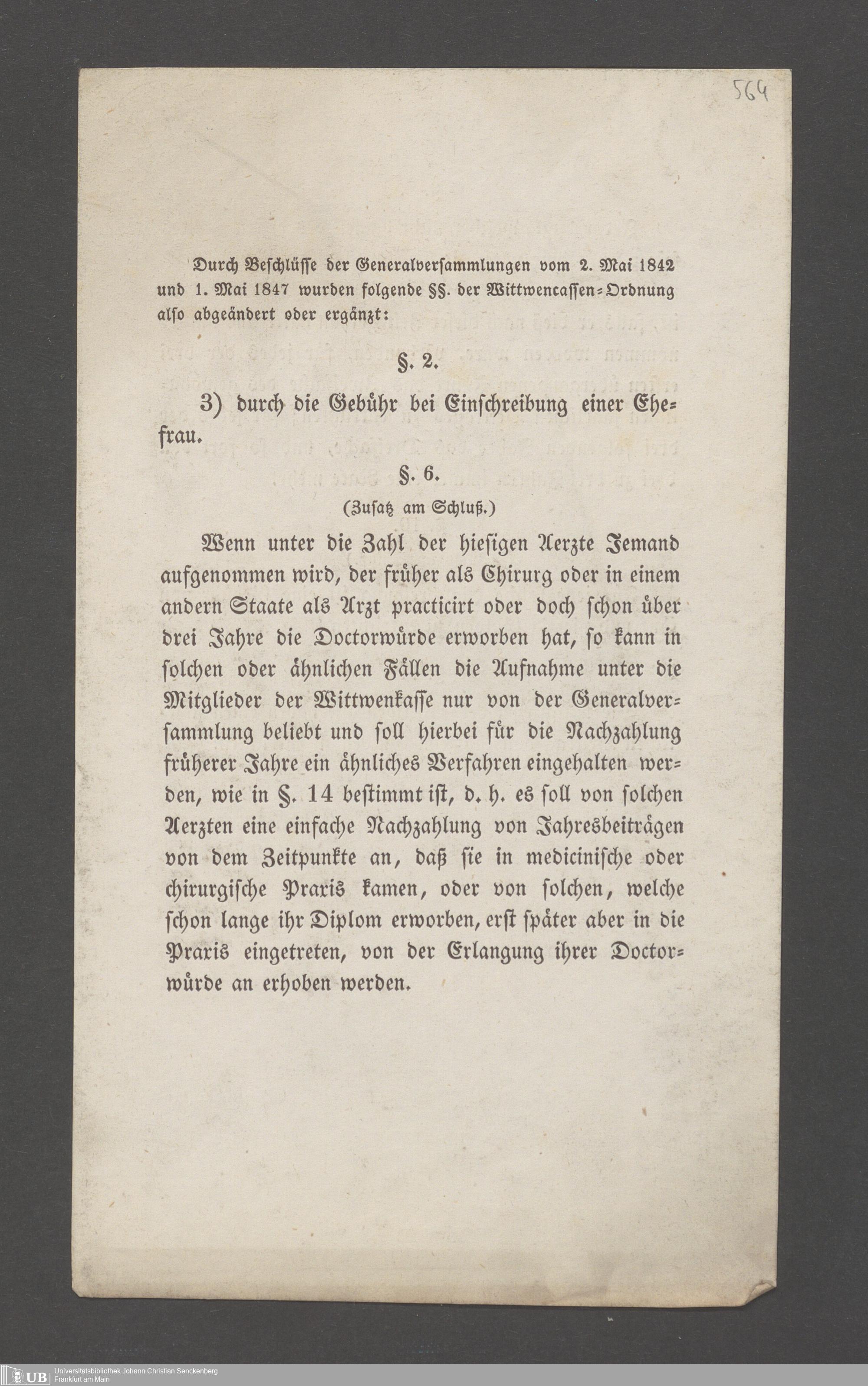B 5 Dr. Senckenbergische Stiftung, 145 - Witwenkasse VII