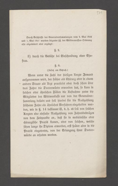 B 5 Dr. Senckenbergische Stiftung, 145 - Witwenkasse VII