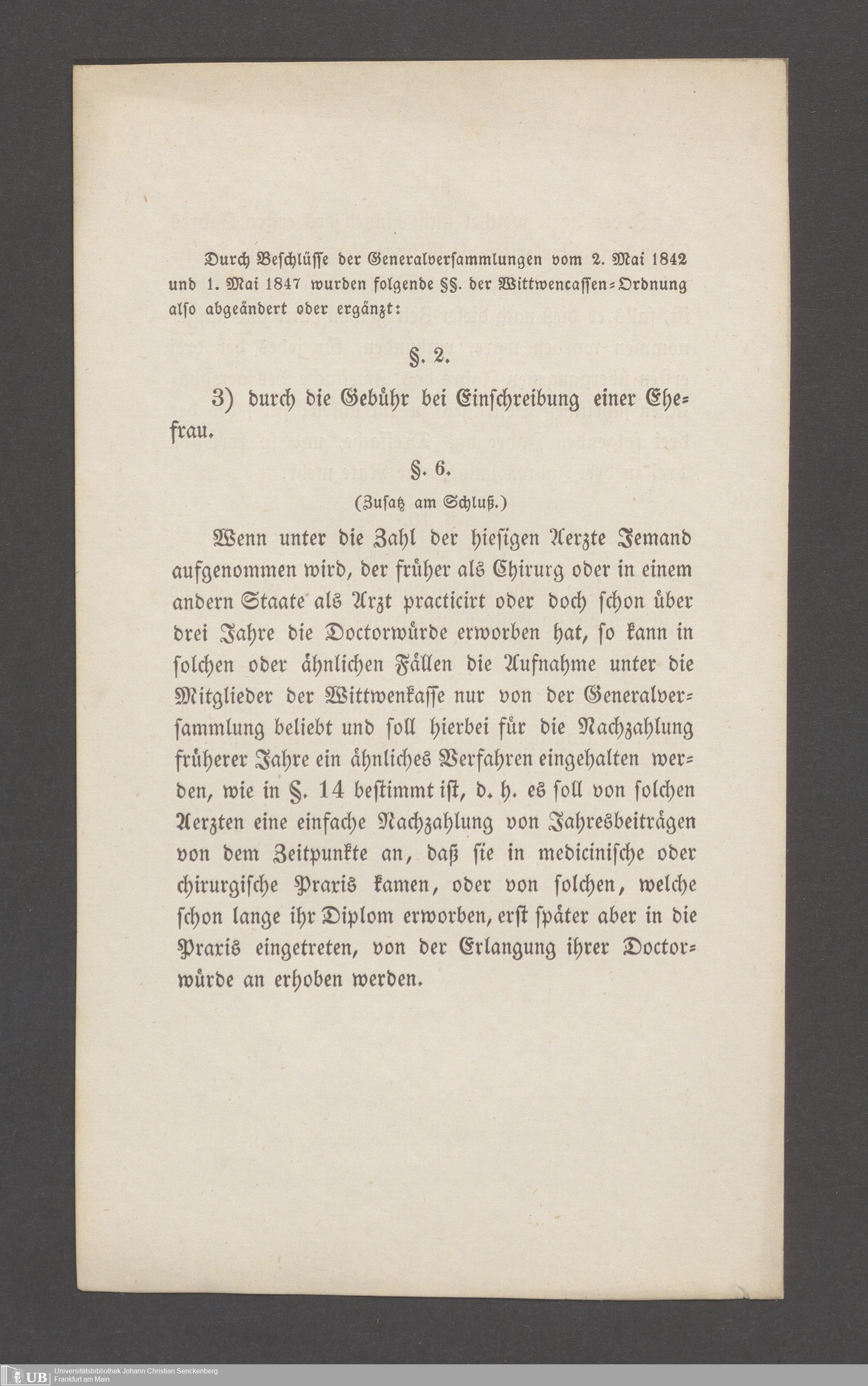 B 5 Dr. Senckenbergische Stiftung, 145 - Witwenkasse VII