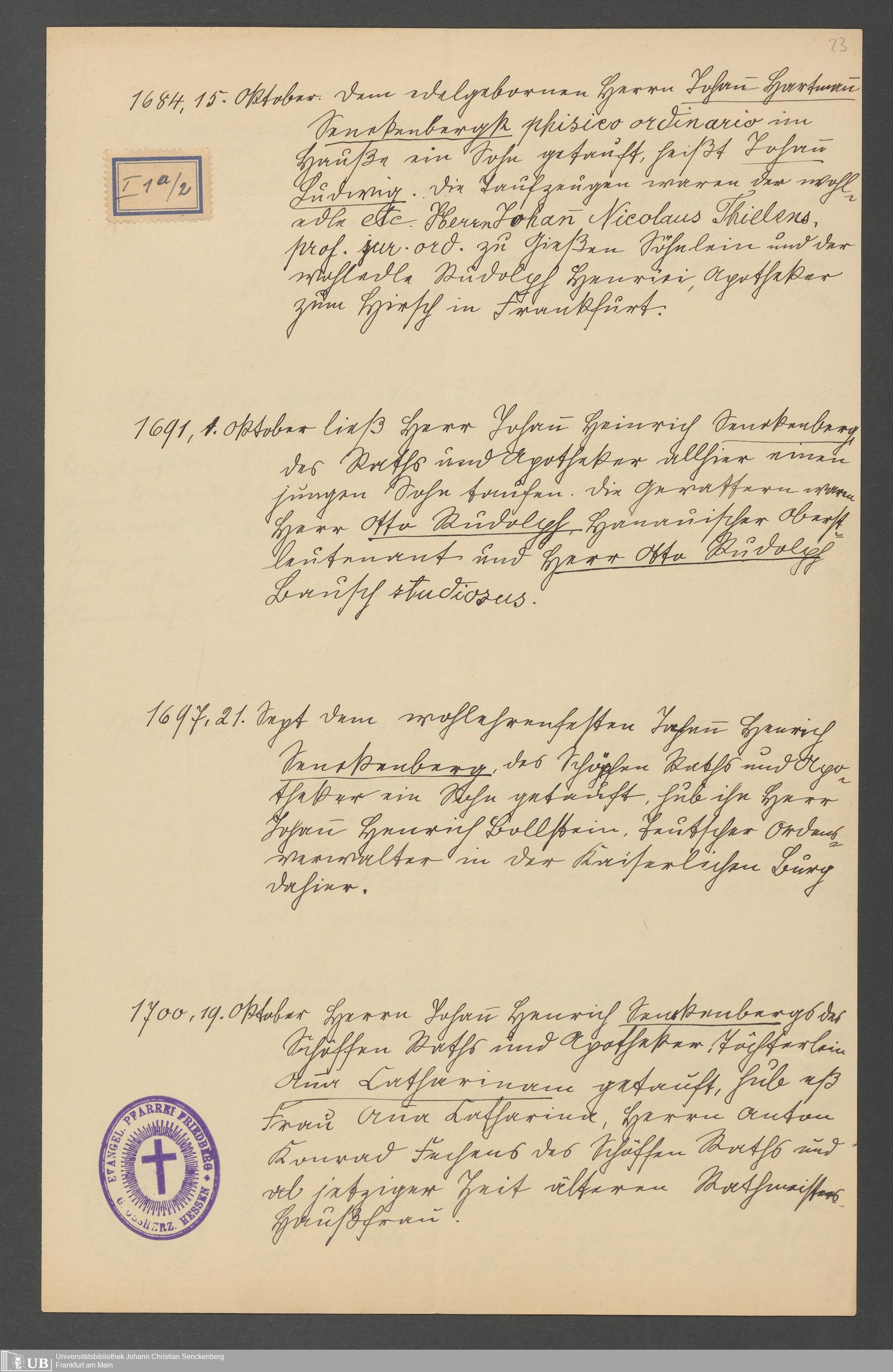 Nachlass Johann Christian Senckenberg