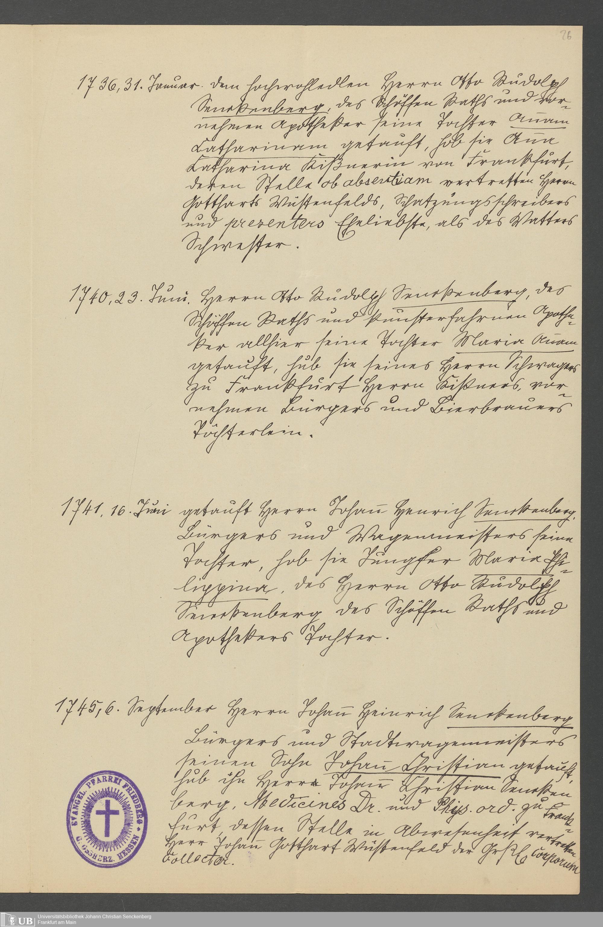 Nachlass Johann Christian Senckenberg