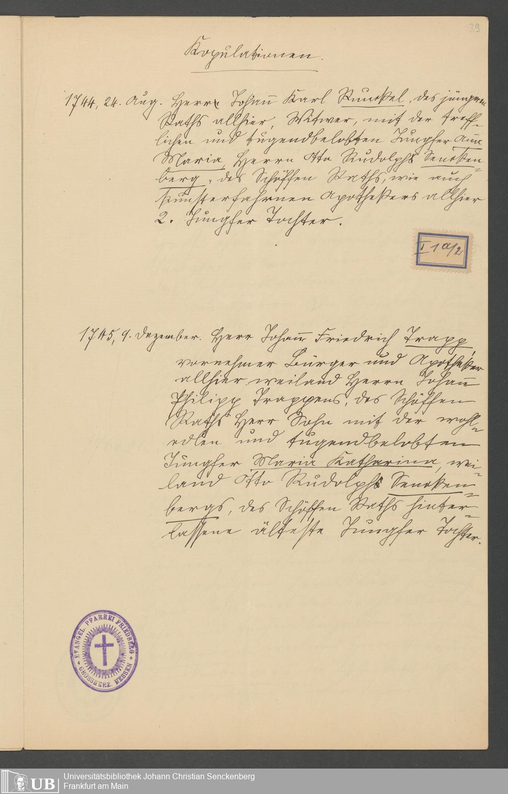 Na 31 Nachlass Johann Christian Senckenberg, 55 - Stammtafeln und Kirchenbuchauszüge zur Familie Senckenberg
