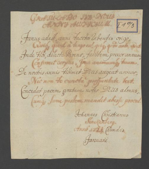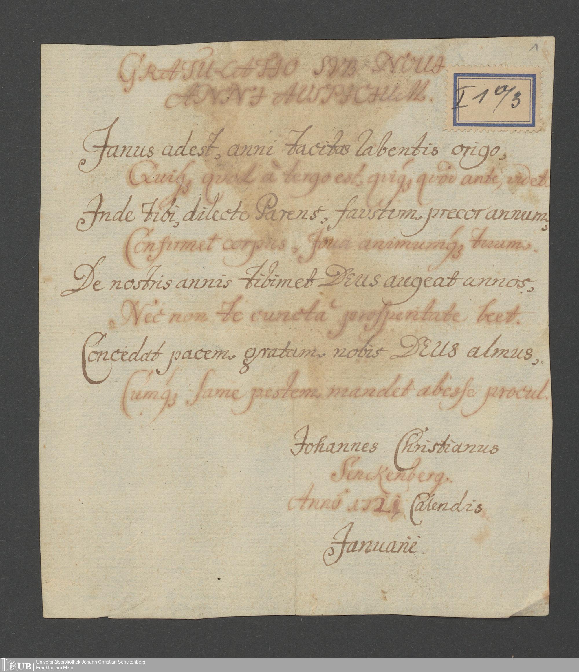 Na 31 Nachlass Johann Christian Senckenberg, 56 - Glückwunsch und Jugendbriefe Senckenbergs an den Vater Johann Hartmann Senckenberg (p. I.1.a.3)
