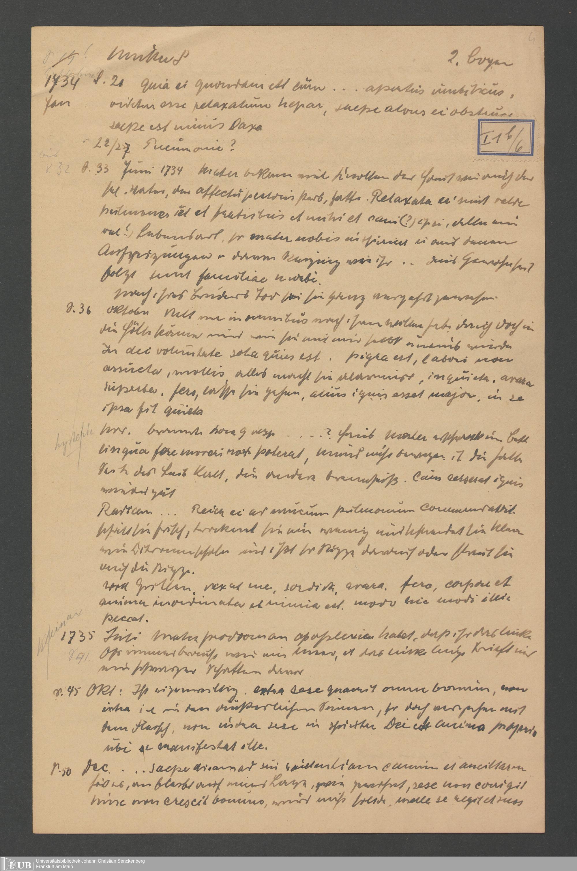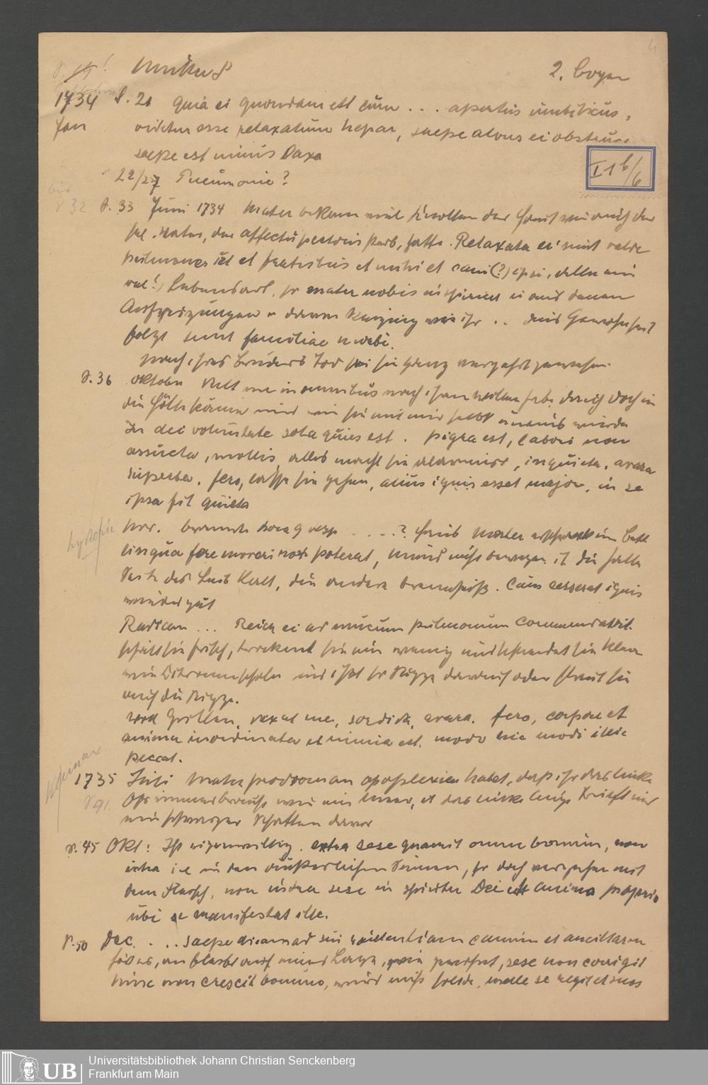 Na 31 Nachlass Johann Christian Senckenberg, 59 - Consillium medicum pro Anna Margaretha Senckenbergia (p. I.a.1.6)