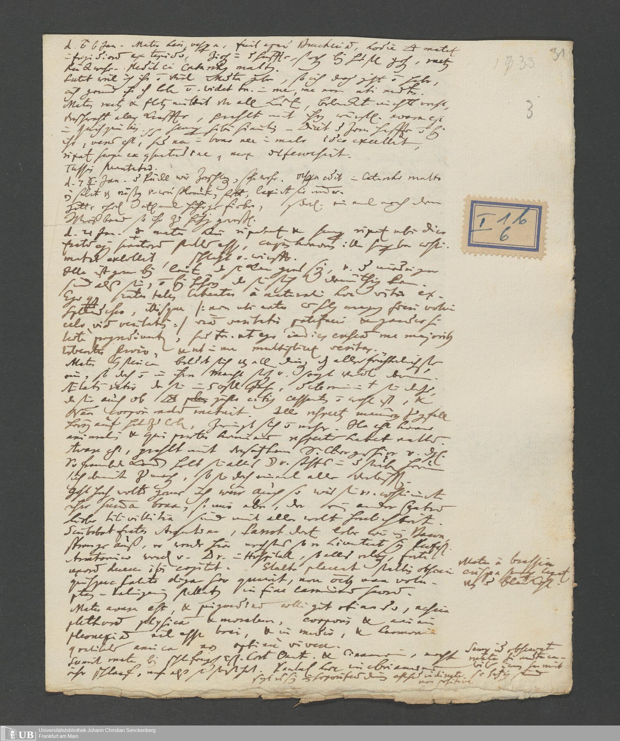 Na 31 Nachlass Johann Christian Senckenberg, 59 - Consillium medicum pro Anna Margaretha Senckenbergia (p. I.a.1.6)