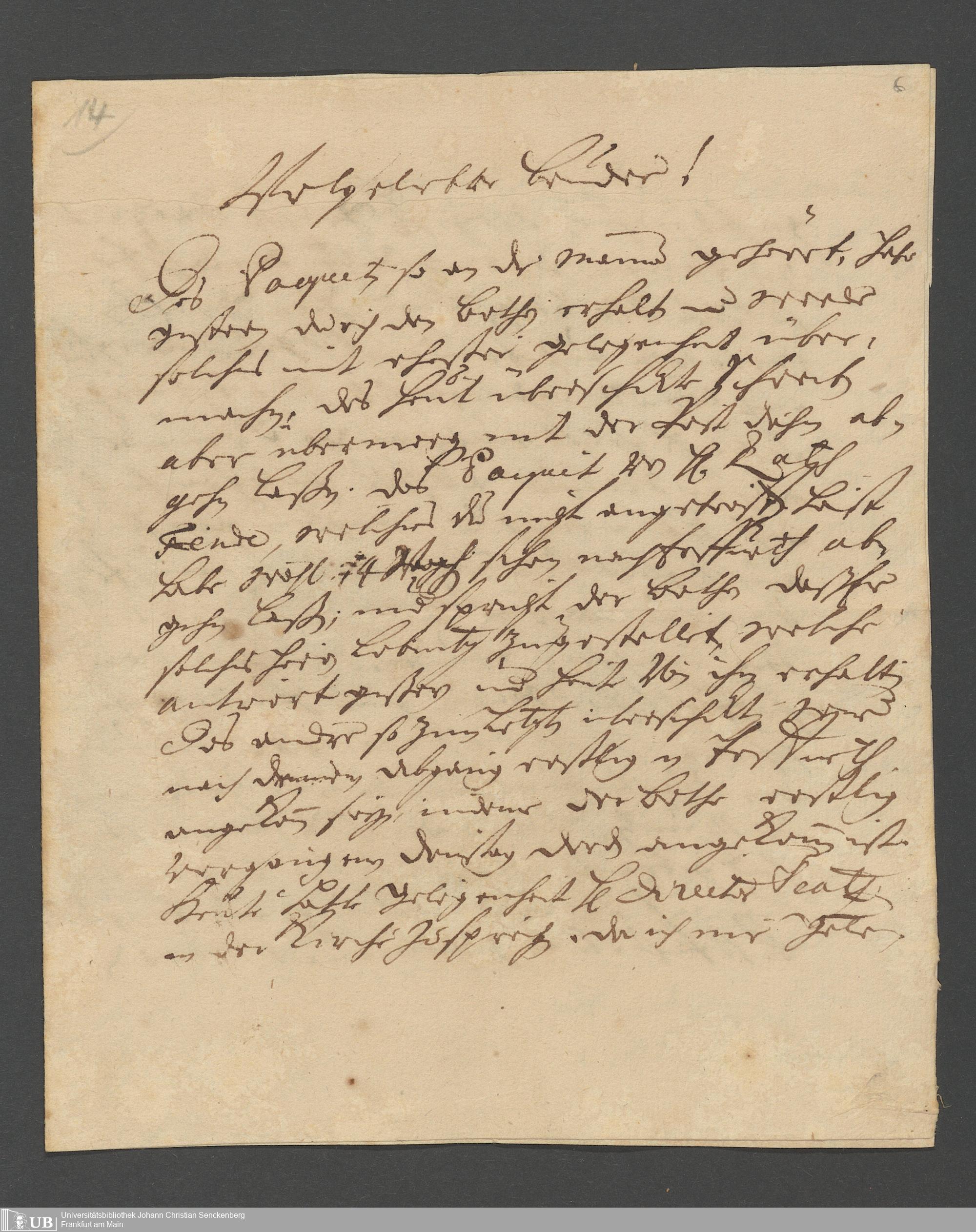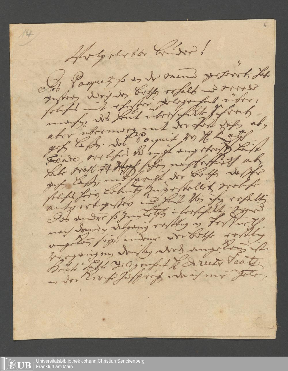 Na 31 Nachlass Johann Christian Senckenberg, 62 - Briefe der Mutter Anna Margaretha und der Brüder Johann Christian und Erasmus