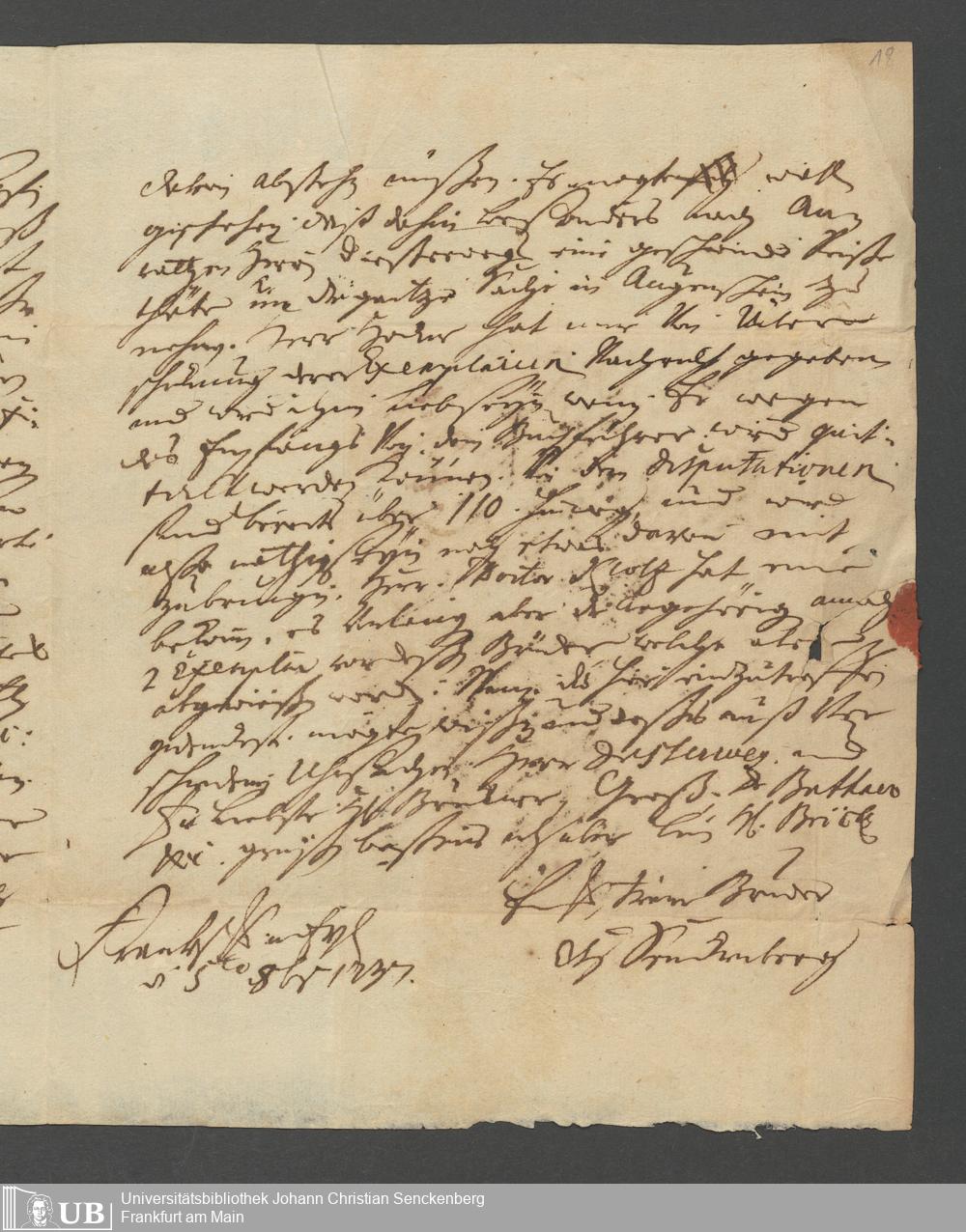 Na 31 Nachlass Johann Christian Senckenberg, 62 - Briefe der Mutter Anna Margaretha und der Brüder Johann Christian und Erasmus