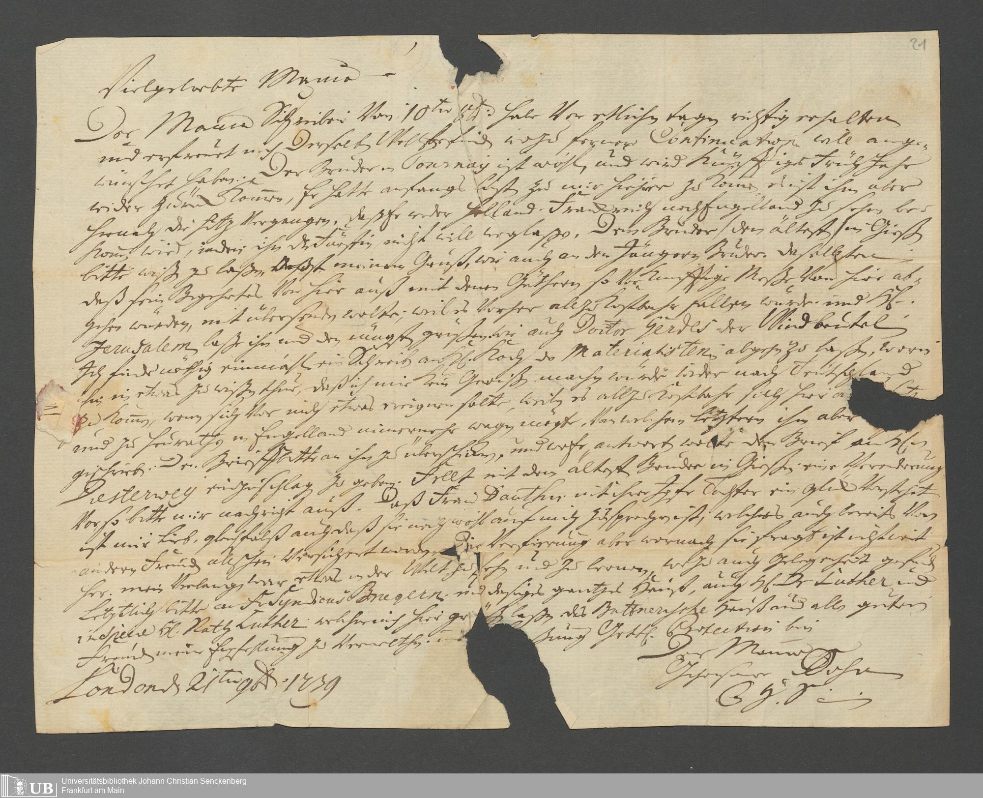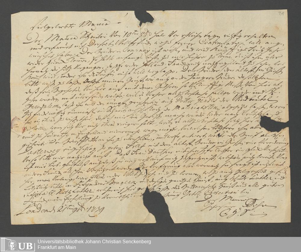 Na 31 Nachlass Johann Christian Senckenberg, 62 - Briefe der Mutter Anna Margaretha und der Brüder Johann Christian und Erasmus