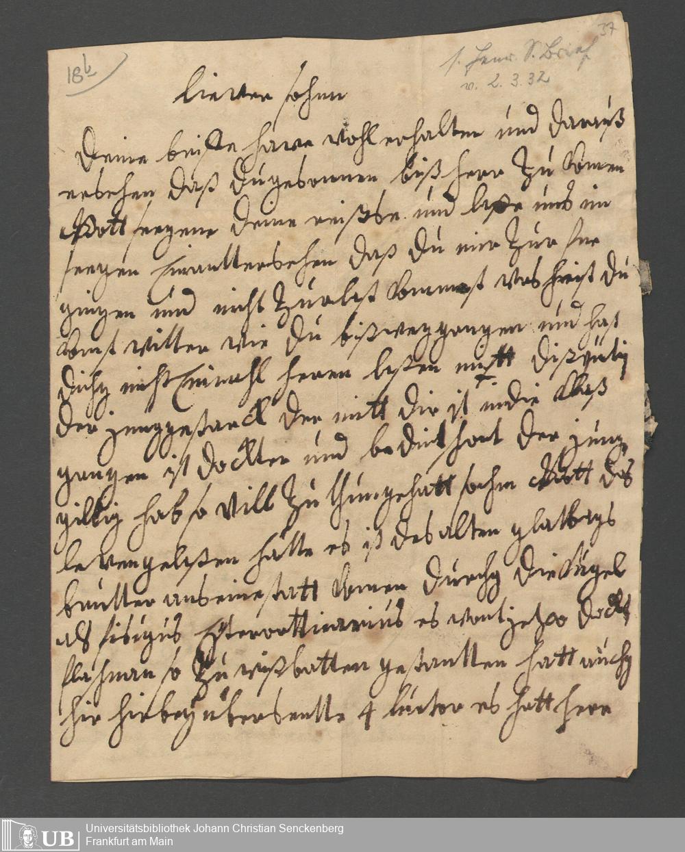 Na 31 Nachlass Johann Christian Senckenberg, 62 - Briefe der Mutter Anna Margaretha und der Brüder Johann Christian und Erasmus