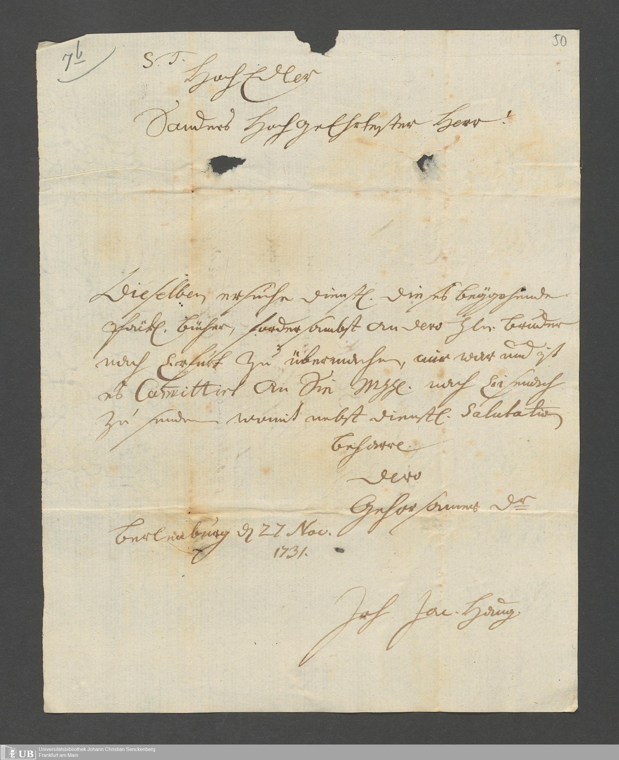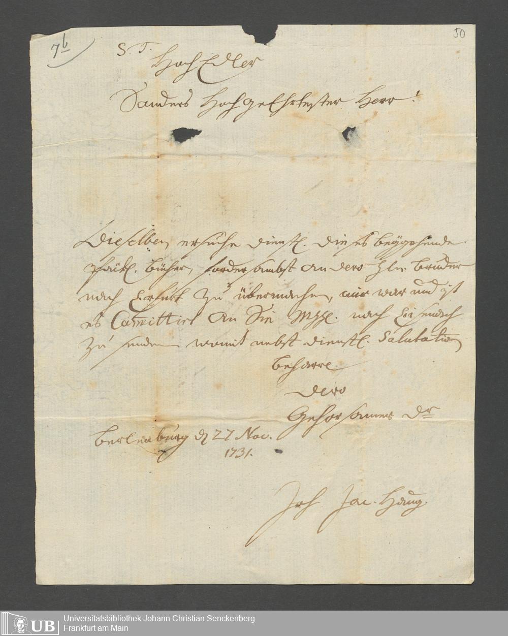 Na 31 Nachlass Johann Christian Senckenberg, 62 - Briefe der Mutter Anna Margaretha und der Brüder Johann Christian und Erasmus