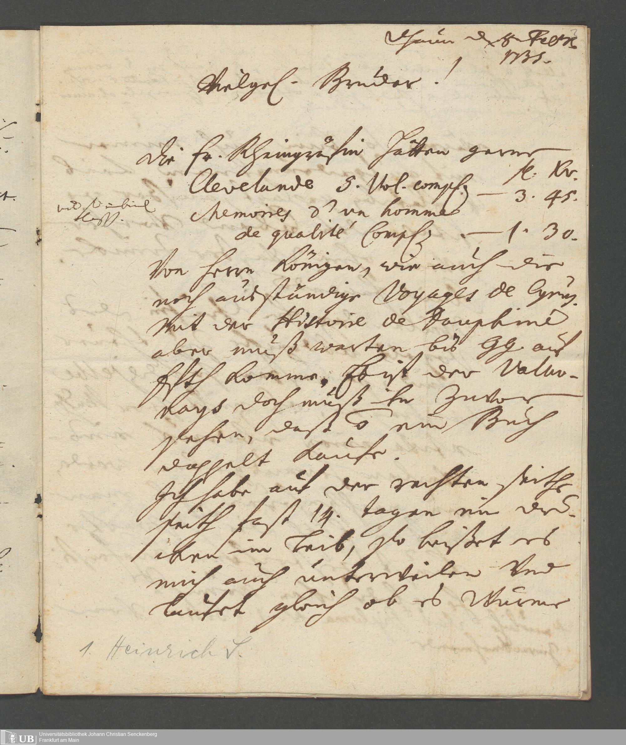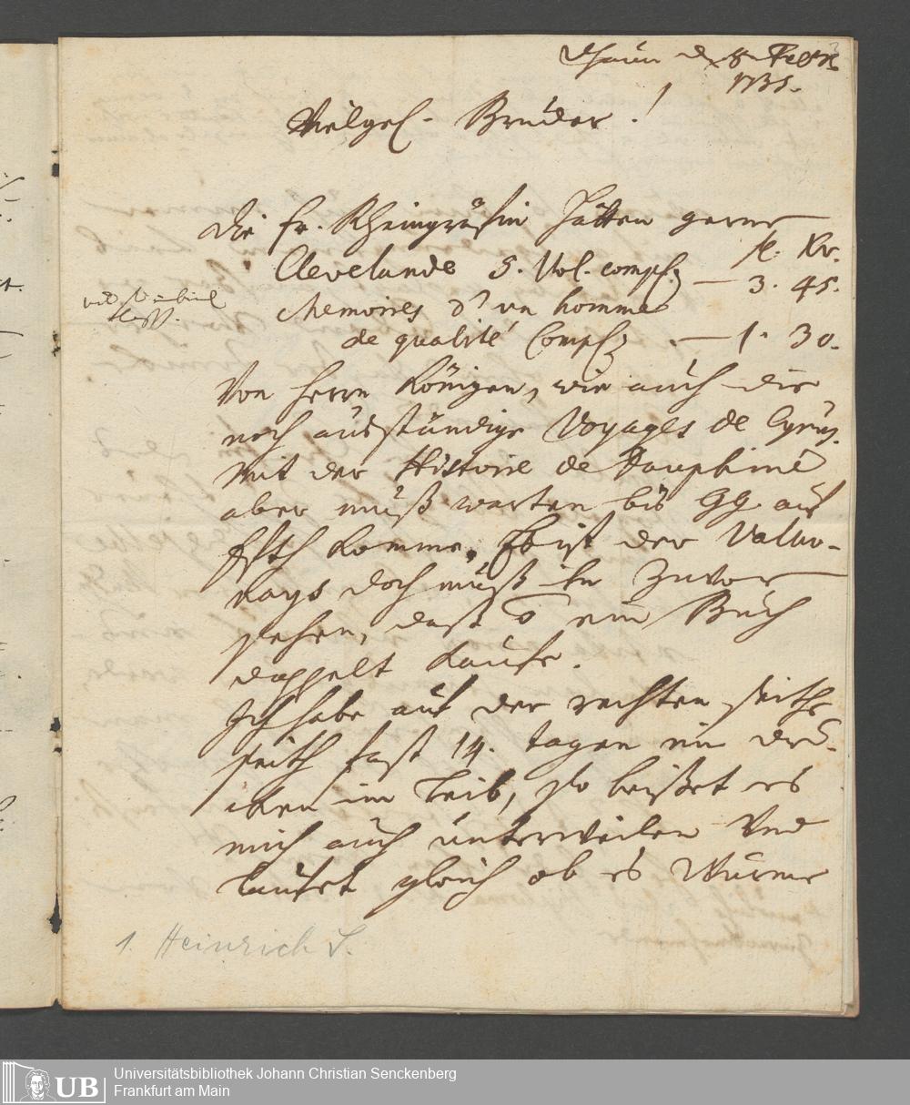 Na 31 Nachlass Johann Christian Senckenberg, 65 - Medizinische Aufzeichnungen über die Brüder Heinrich Christian und Erasmus Senckenberg (p. I.1.b.12)