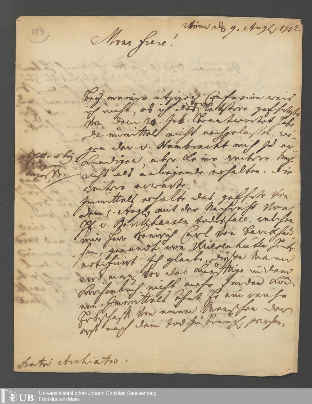 Na 31 Nachlass Johann Christian Senckenberg, 66 - Briefe von Heinrich Christian Senckenberg