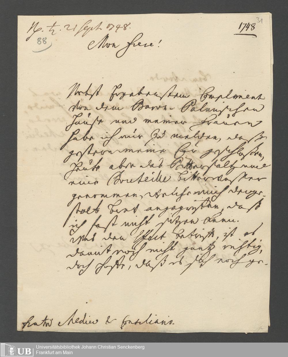 Na 31 Nachlass Johann Christian Senckenberg, 66 - Briefe von Heinrich Christian Senckenberg