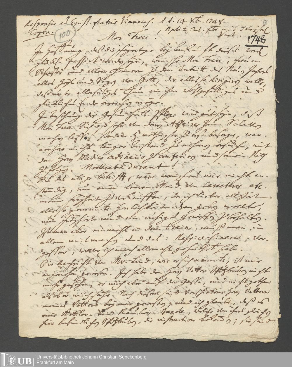 Na 31 Nachlass Johann Christian Senckenberg, 66 - Briefe von Heinrich Christian Senckenberg