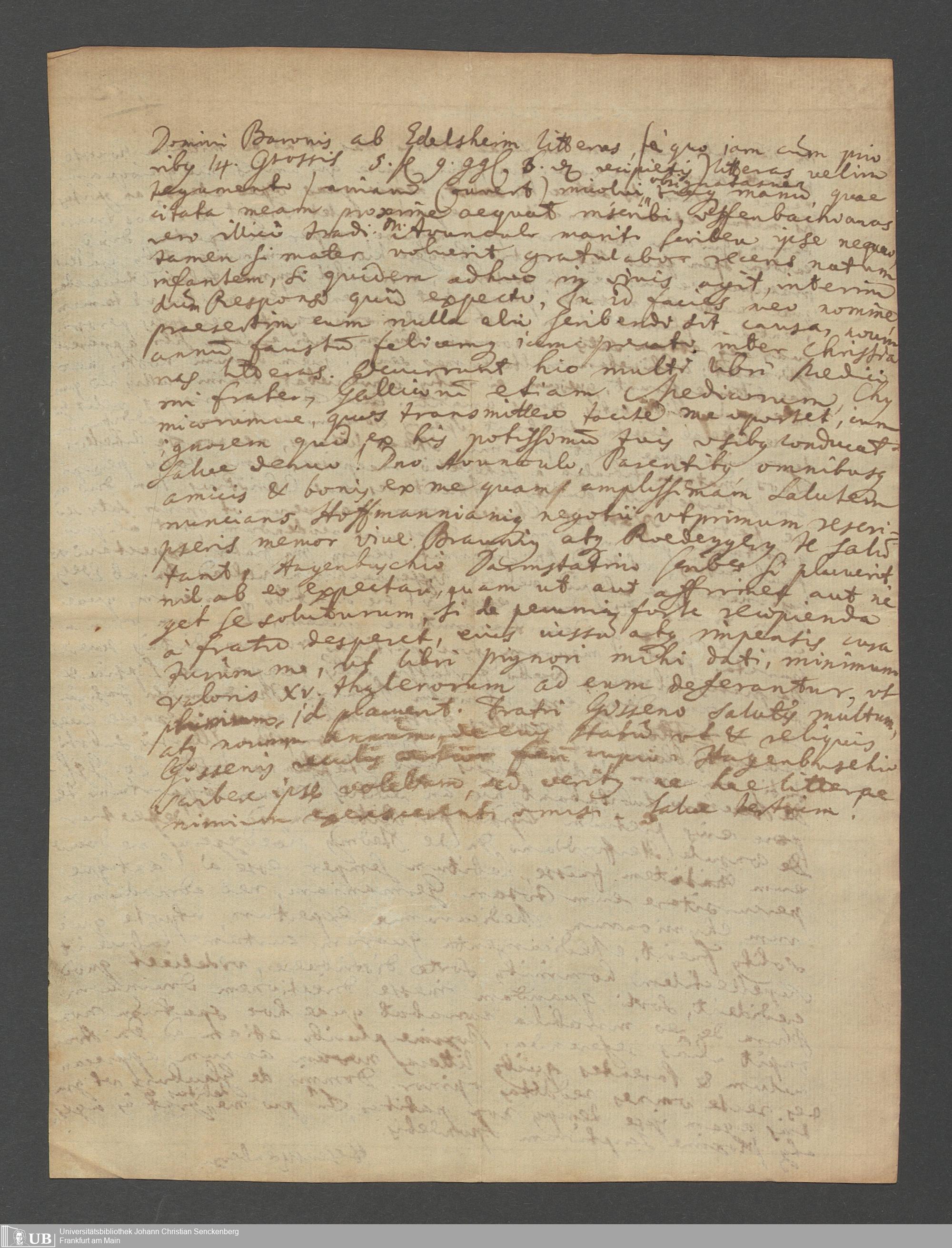 Na 31 Nachlass Johann Christian Senckenberg, 67 - Briefe von Heinrich Christian Senckenberg (p. I.1.b.14)