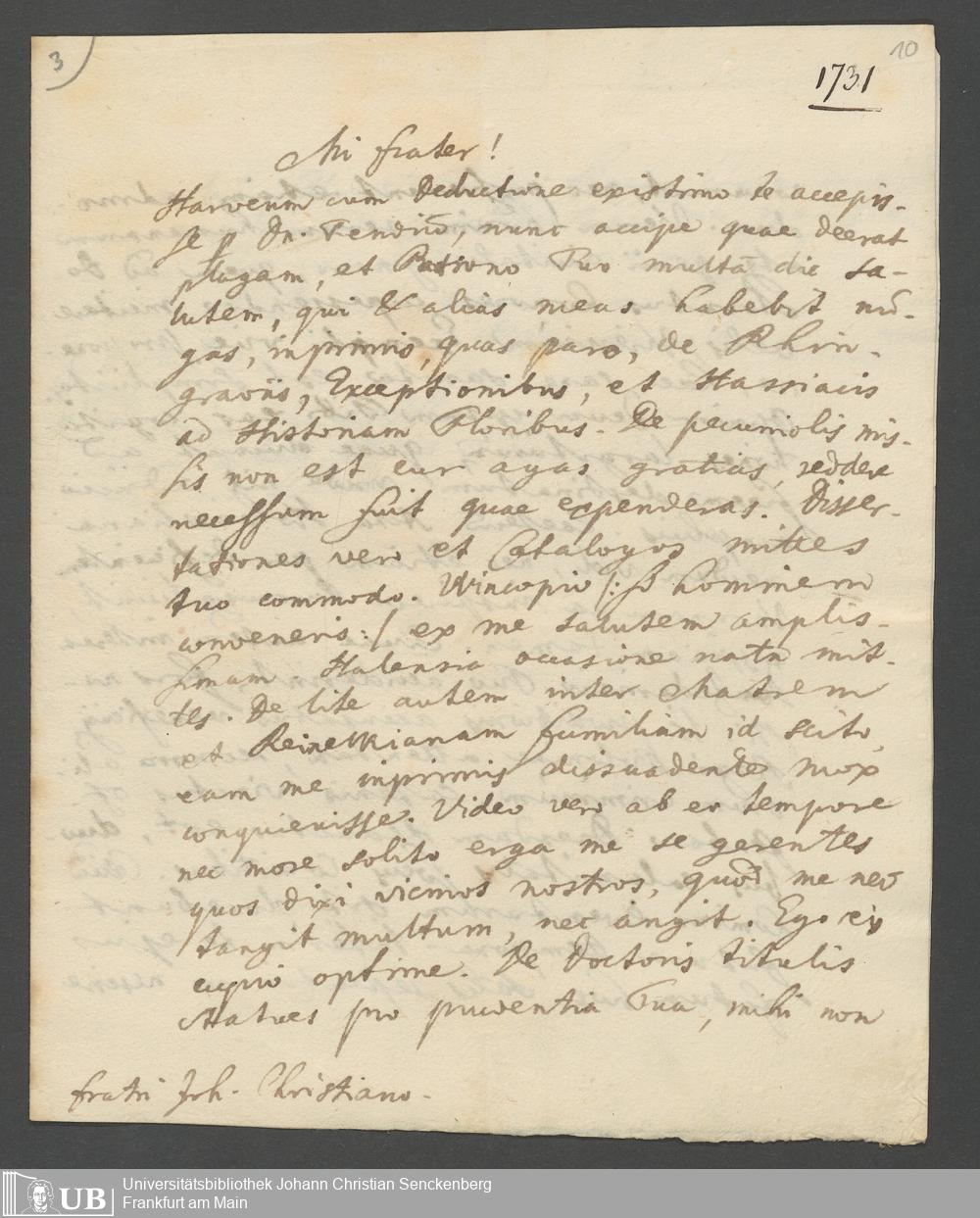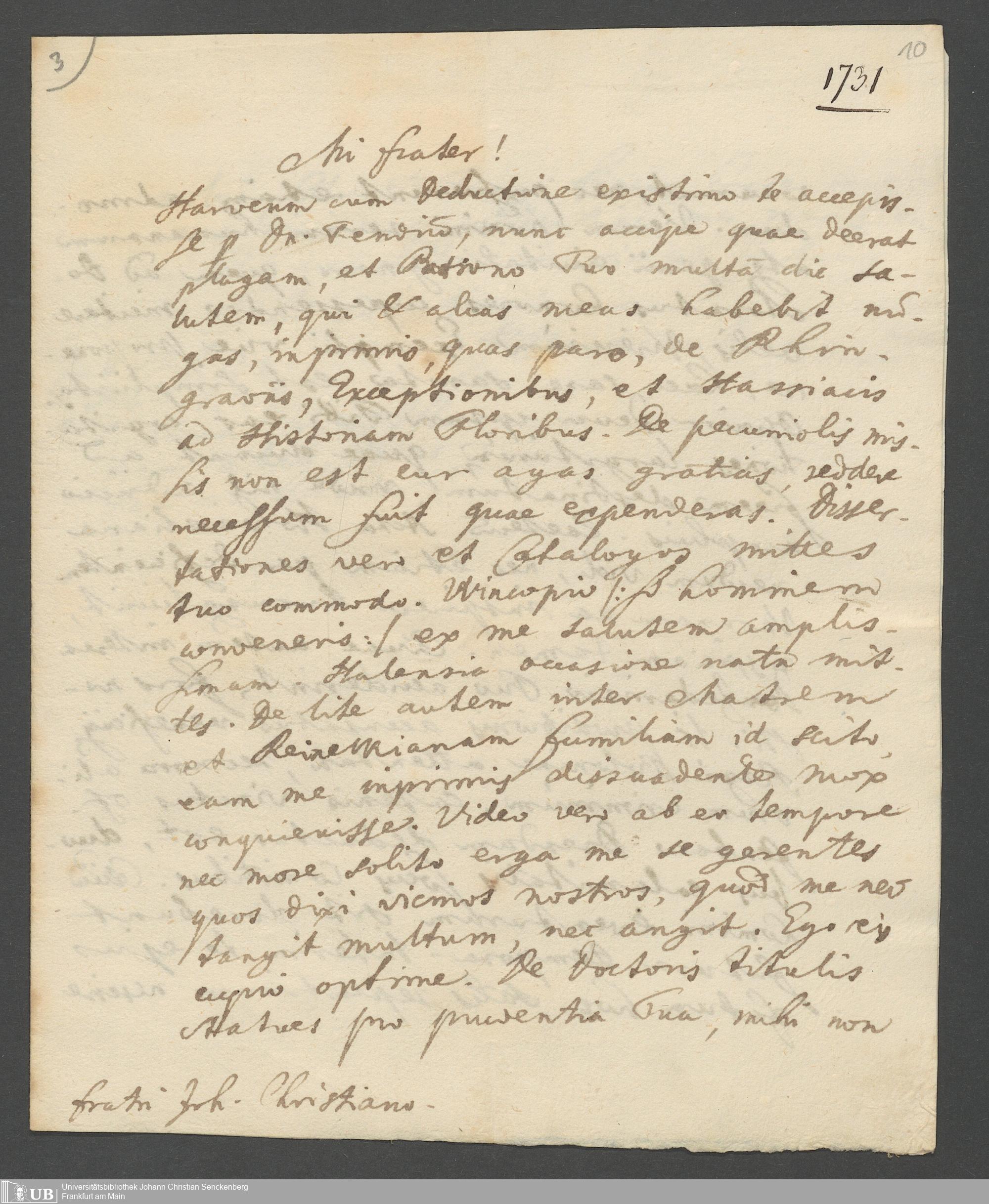 Na 31 Nachlass Johann Christian Senckenberg, 67 - Briefe von Heinrich Christian Senckenberg
