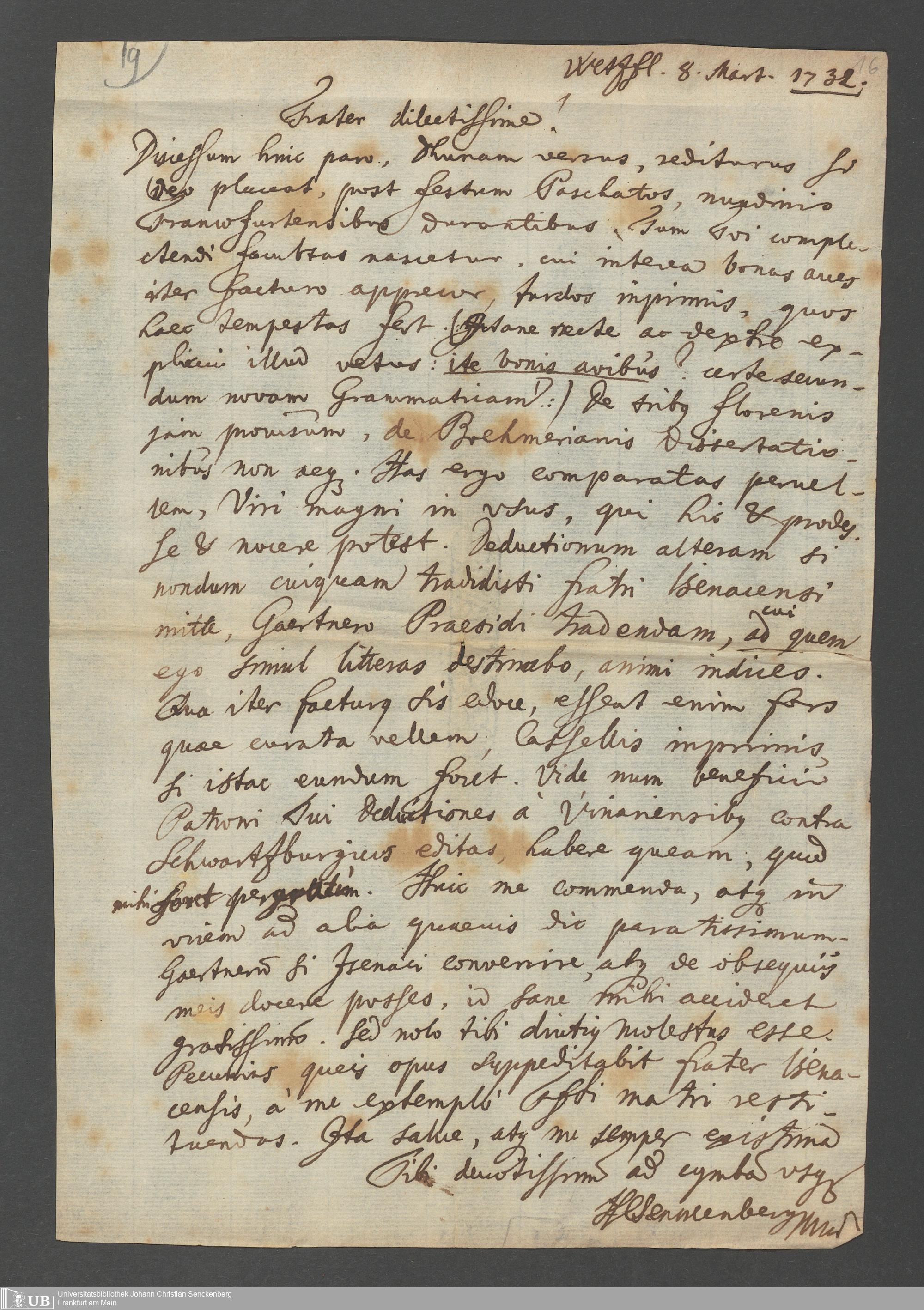 Na 31 Nachlass Johann Christian Senckenberg, 67 - Briefe von Heinrich Christian Senckenberg (p. I.1.b.14)