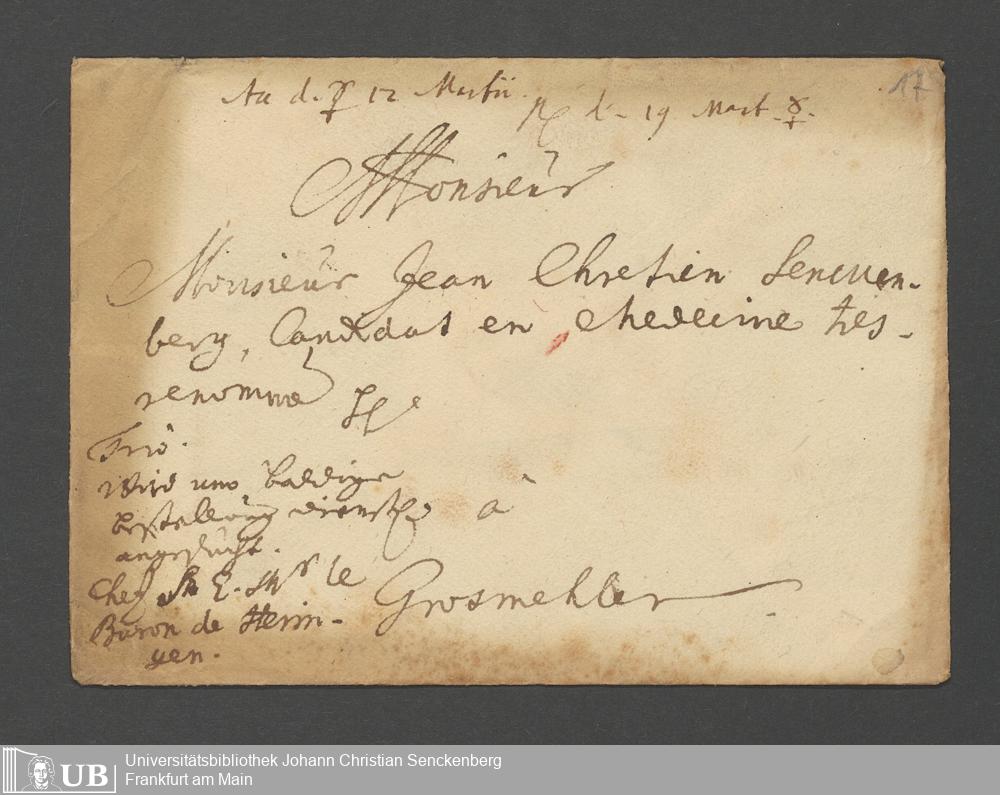 Na 31 Nachlass Johann Christian Senckenberg, 67 - Briefe von Heinrich Christian Senckenberg (p. I.1.b.14)