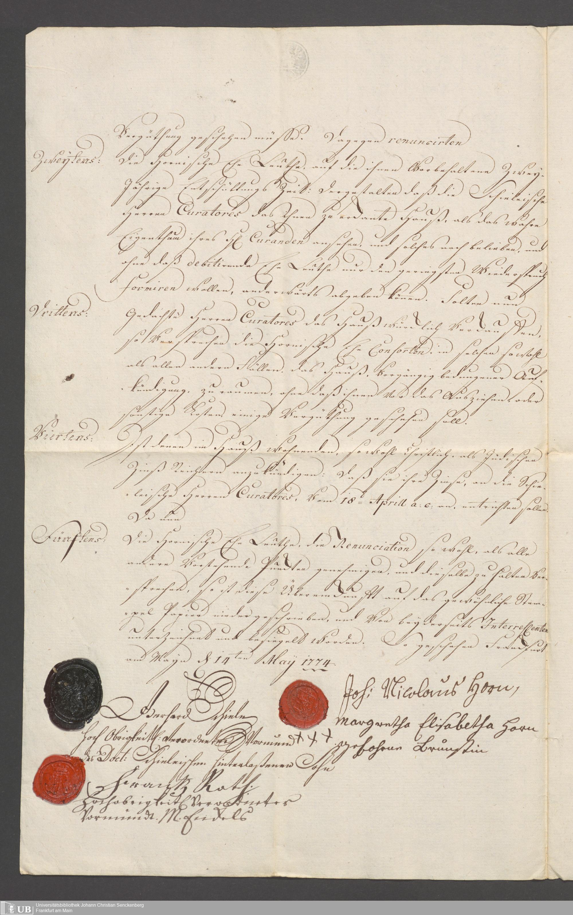 B 5 Dr. Senckenbergische Stiftung, 100 - Testament Philipp Franz Christian Kröger