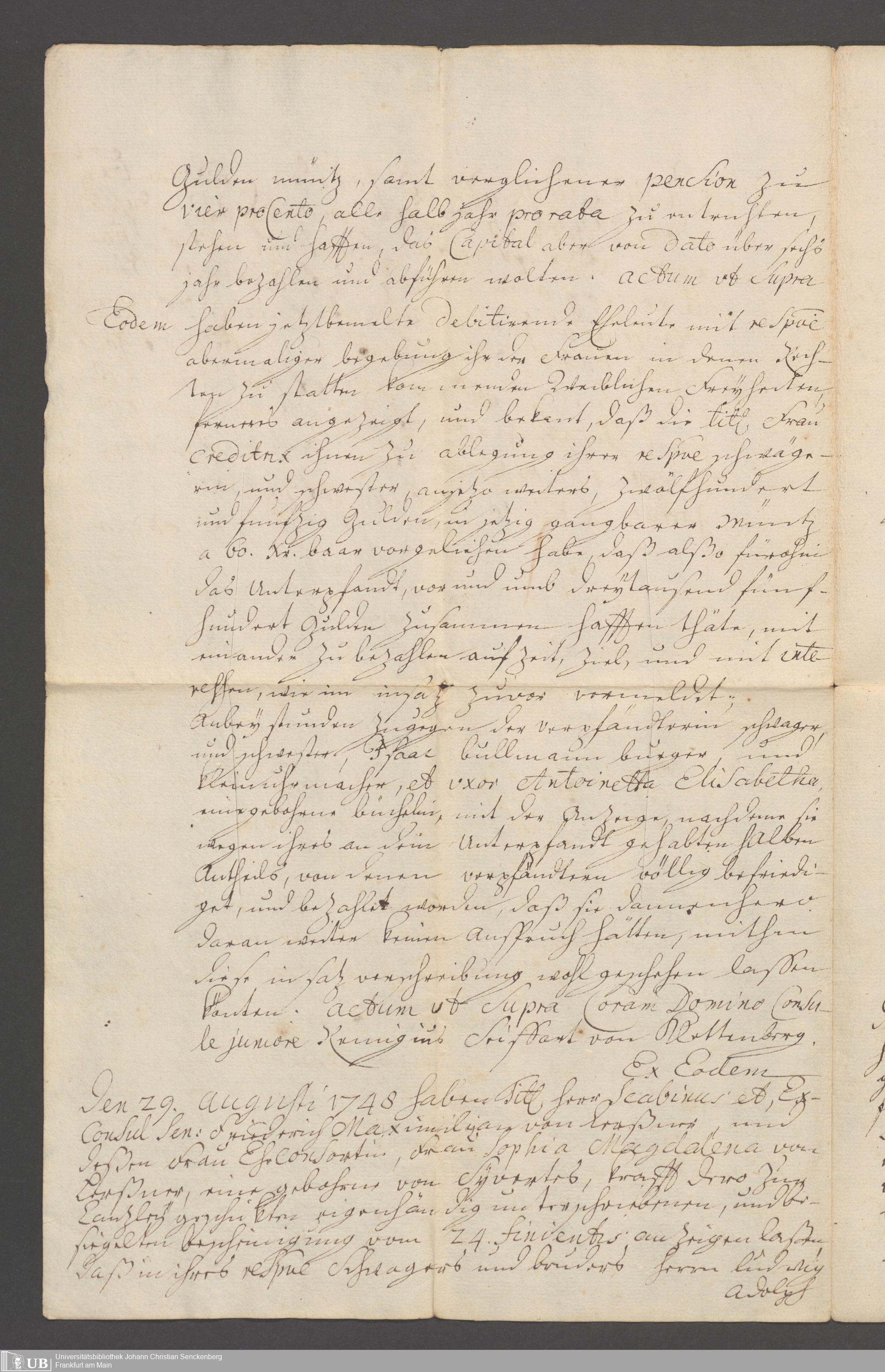 B 5 Dr. Senckenbergische Stiftung, 100 - Testament Philipp Franz Christian Kröger
