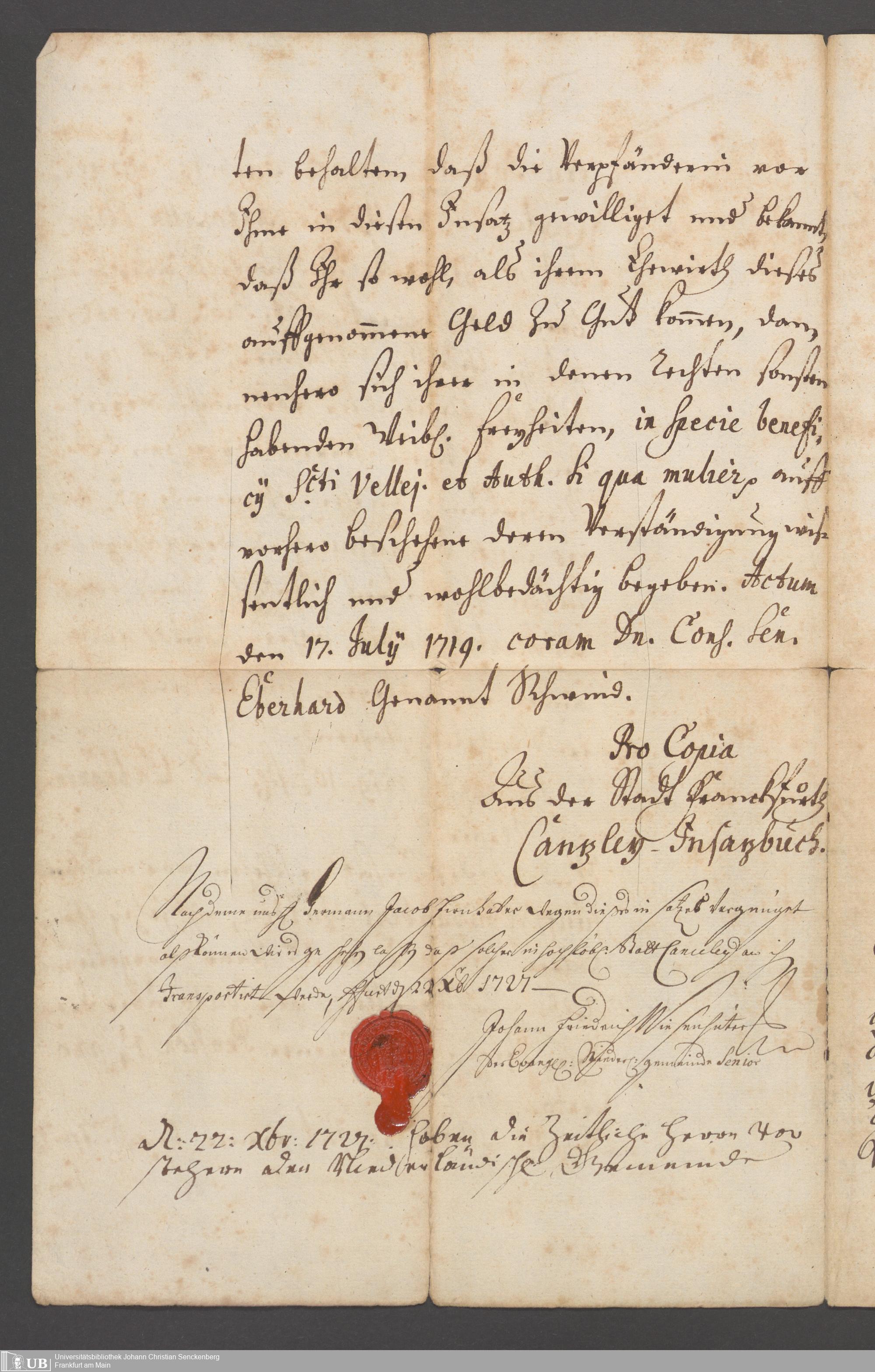 B 5 Dr. Senckenbergische Stiftung, 100 - Testament Philipp Franz Christian Kröger