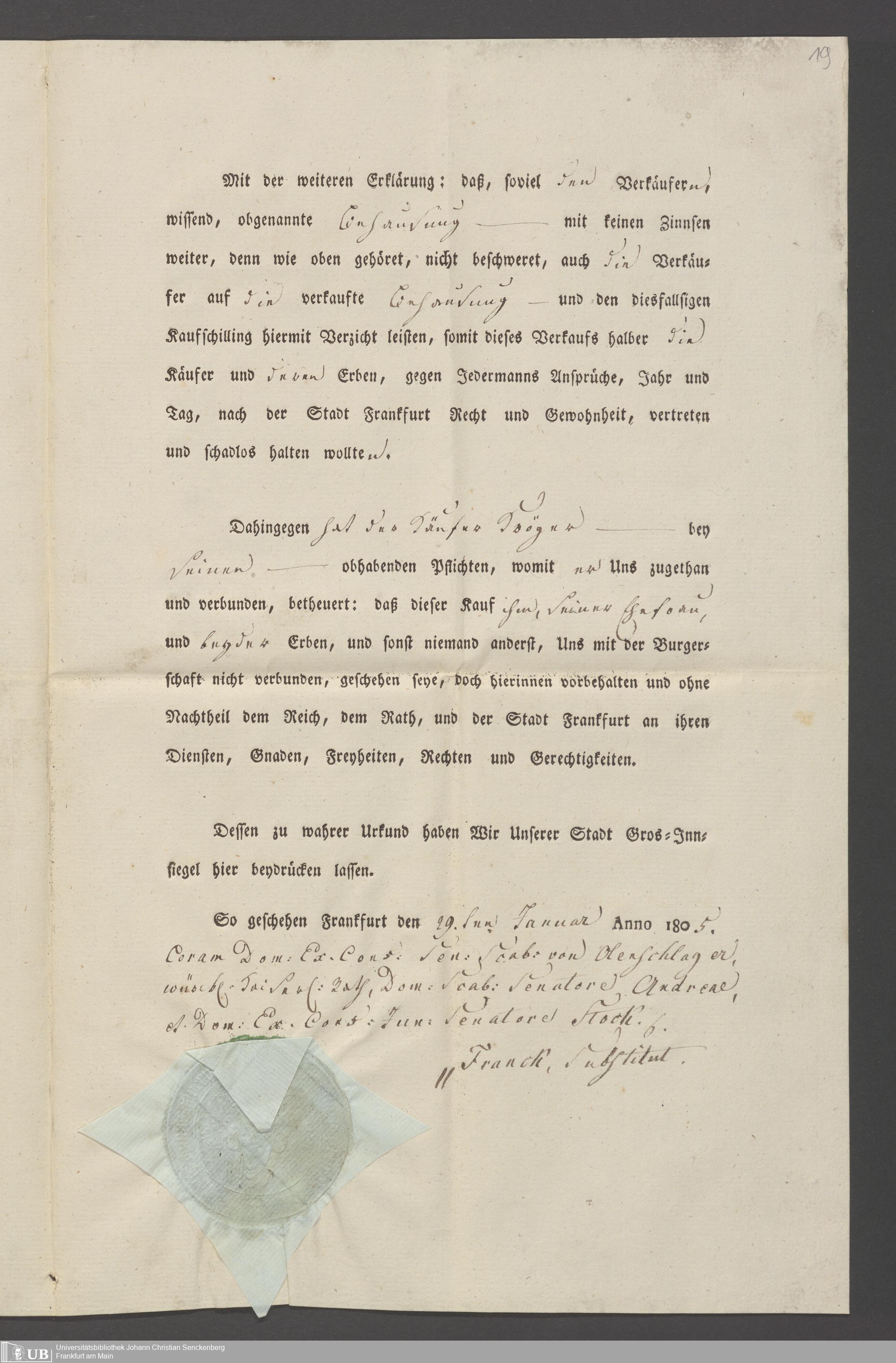 B 5 Dr. Senckenbergische Stiftung, 100 - Testament Philipp Franz Christian Kröger