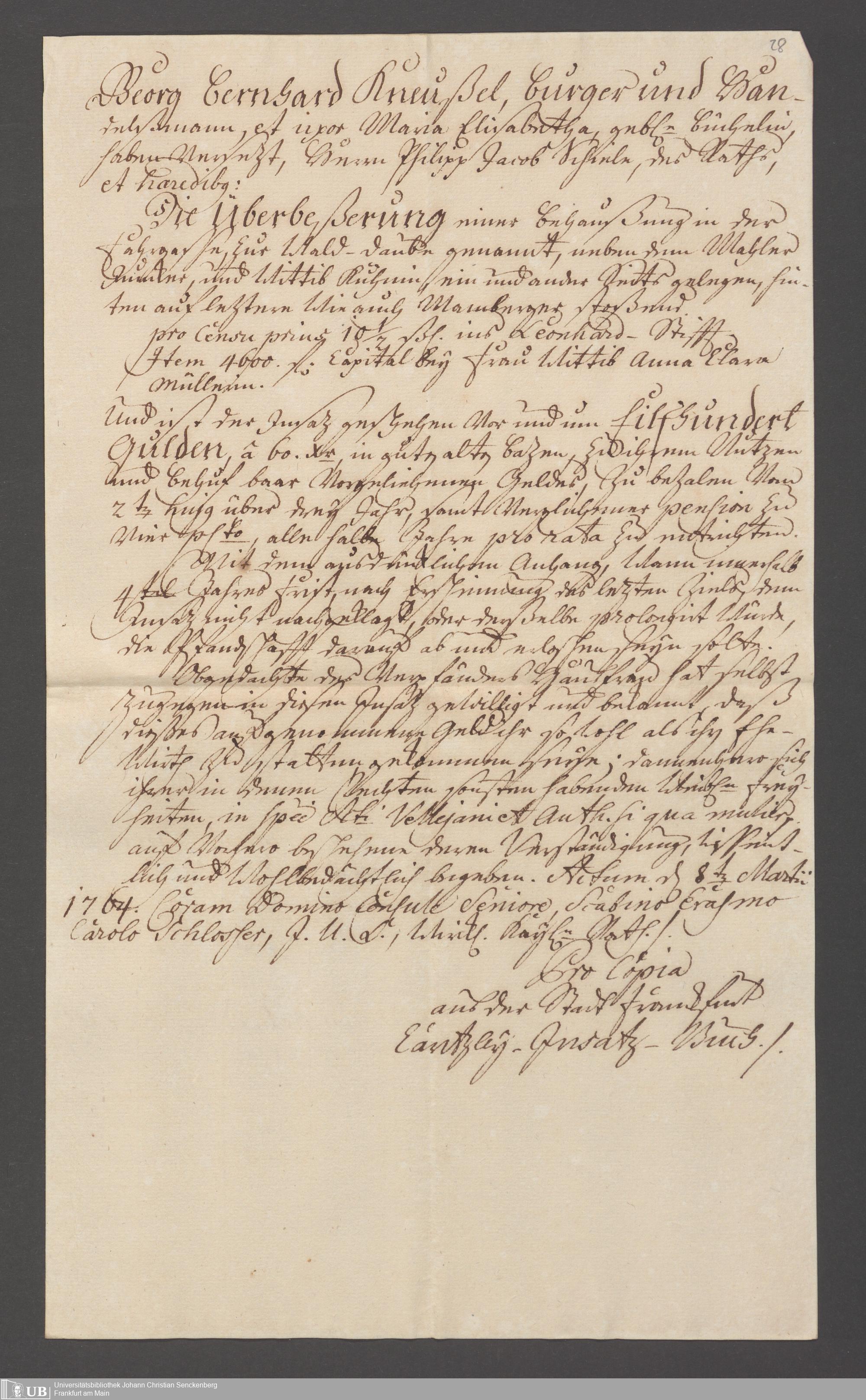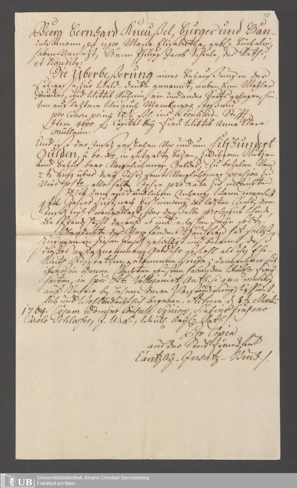 B 5 Dr. Senckenbergische Stiftung, 100 - Testament Philipp Franz Christian Kröger