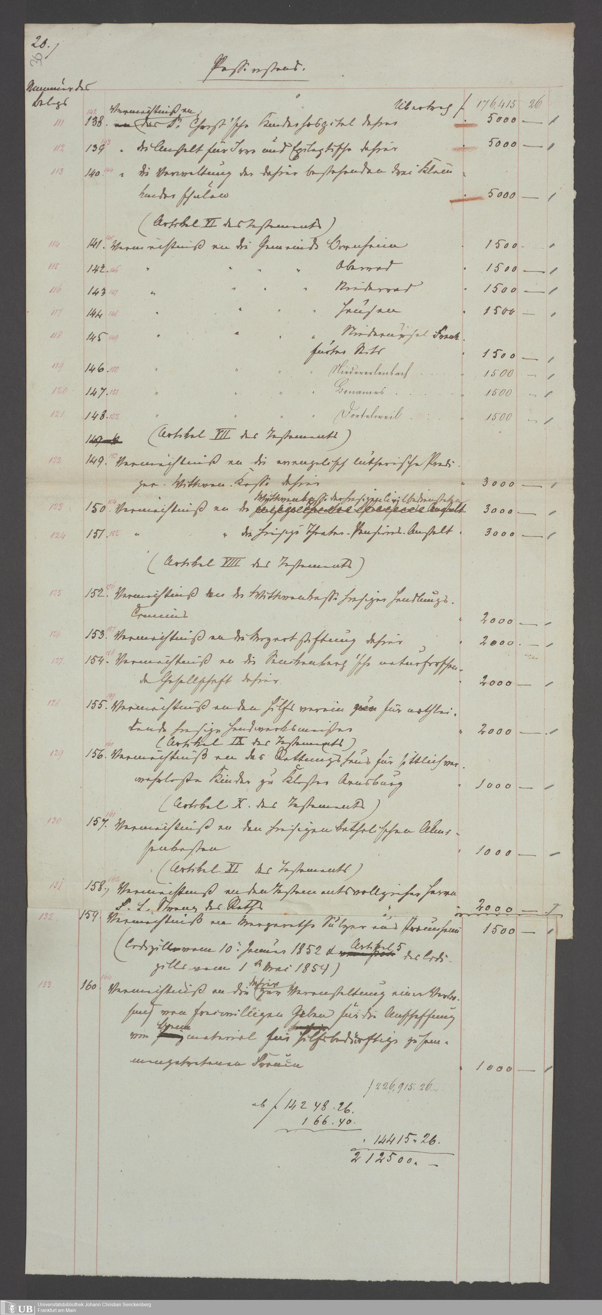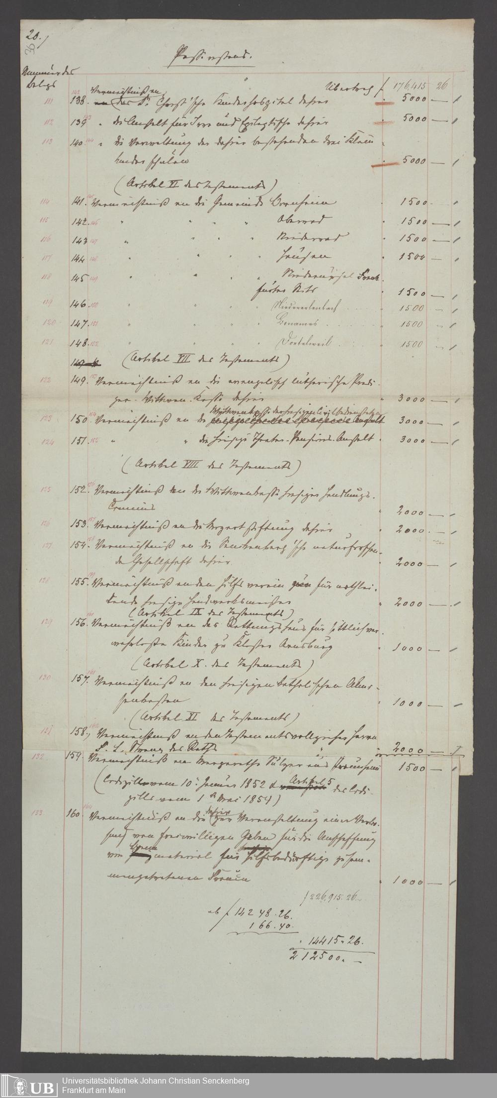 B 5 Dr. Senckenbergische Stiftung, 100 - Testament Philipp Franz Christian Kröger