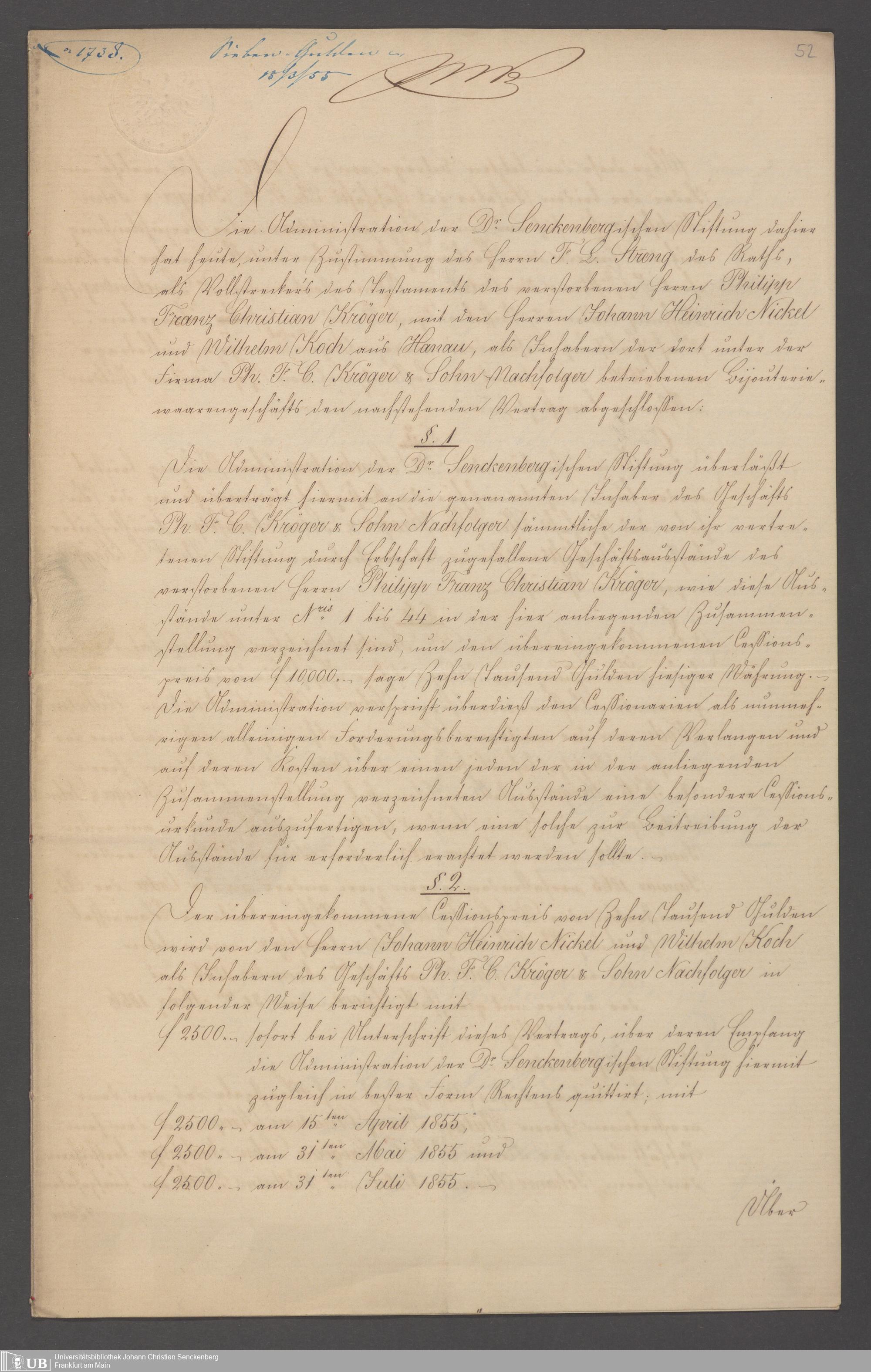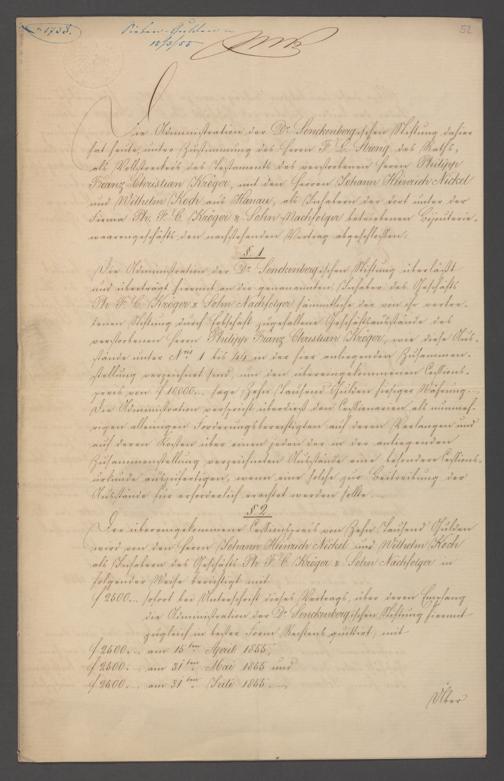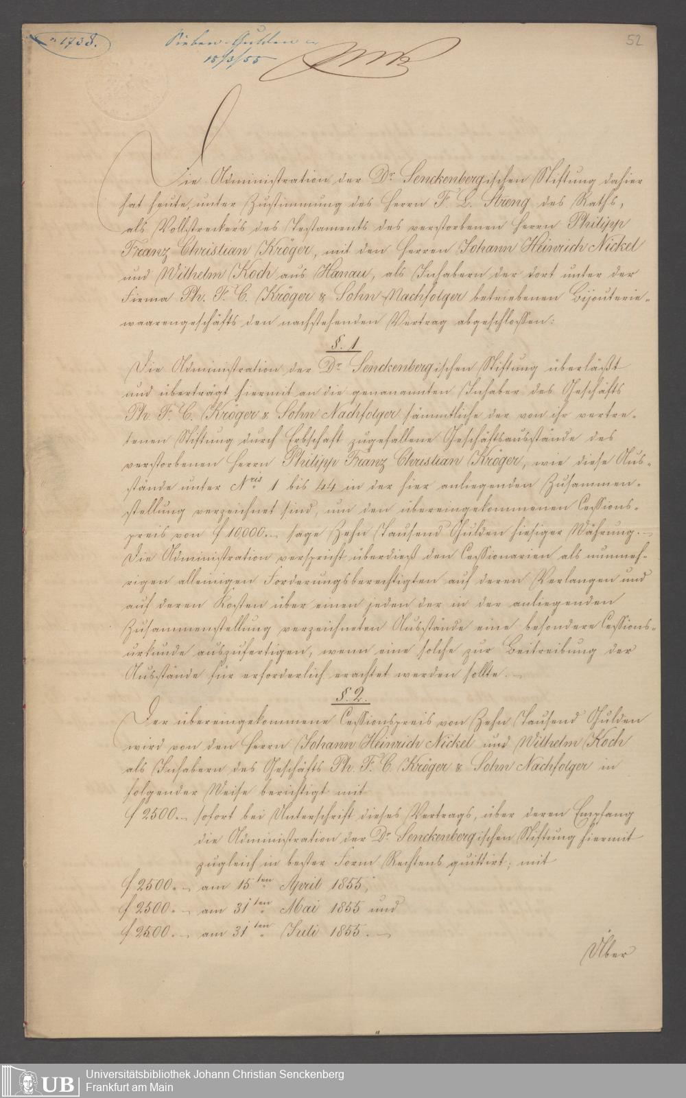 B 5 Dr. Senckenbergische Stiftung, 100 - Testament Philipp Franz Christian Kröger