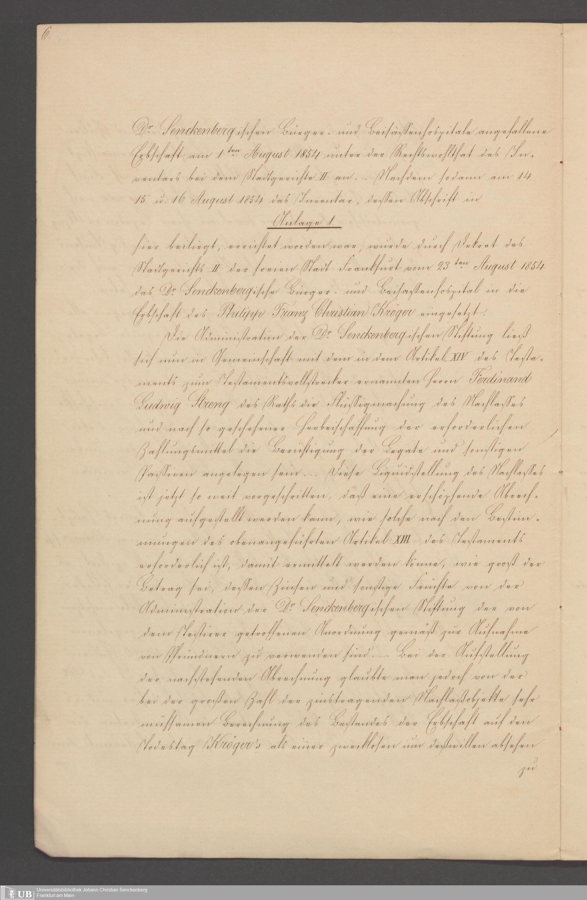 B 5 Dr. Senckenbergische Stiftung, 100 - Testament Philipp Franz Christian Kröger