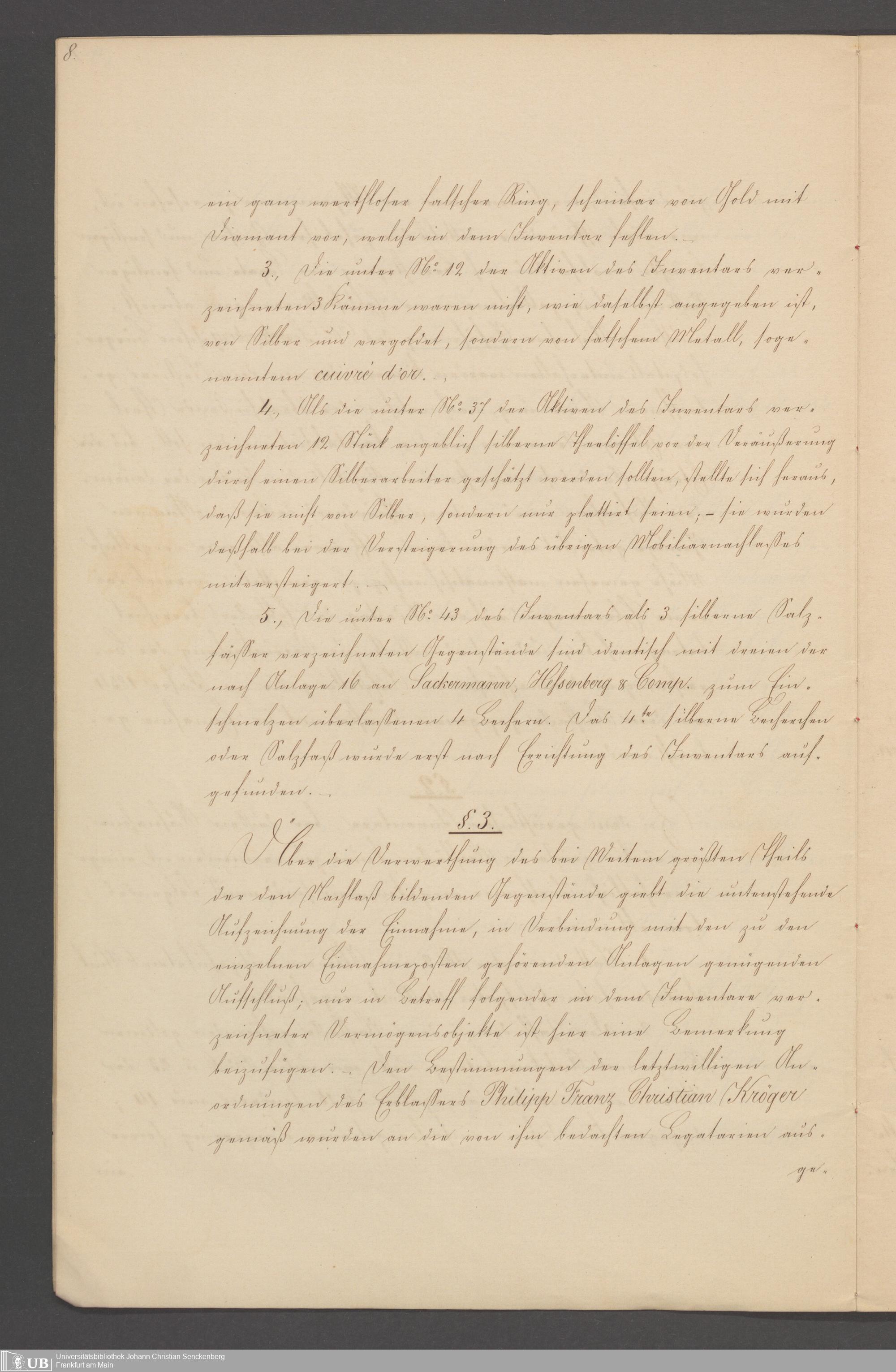 B 5 Dr. Senckenbergische Stiftung, 100 - Testament Philipp Franz Christian Kröger