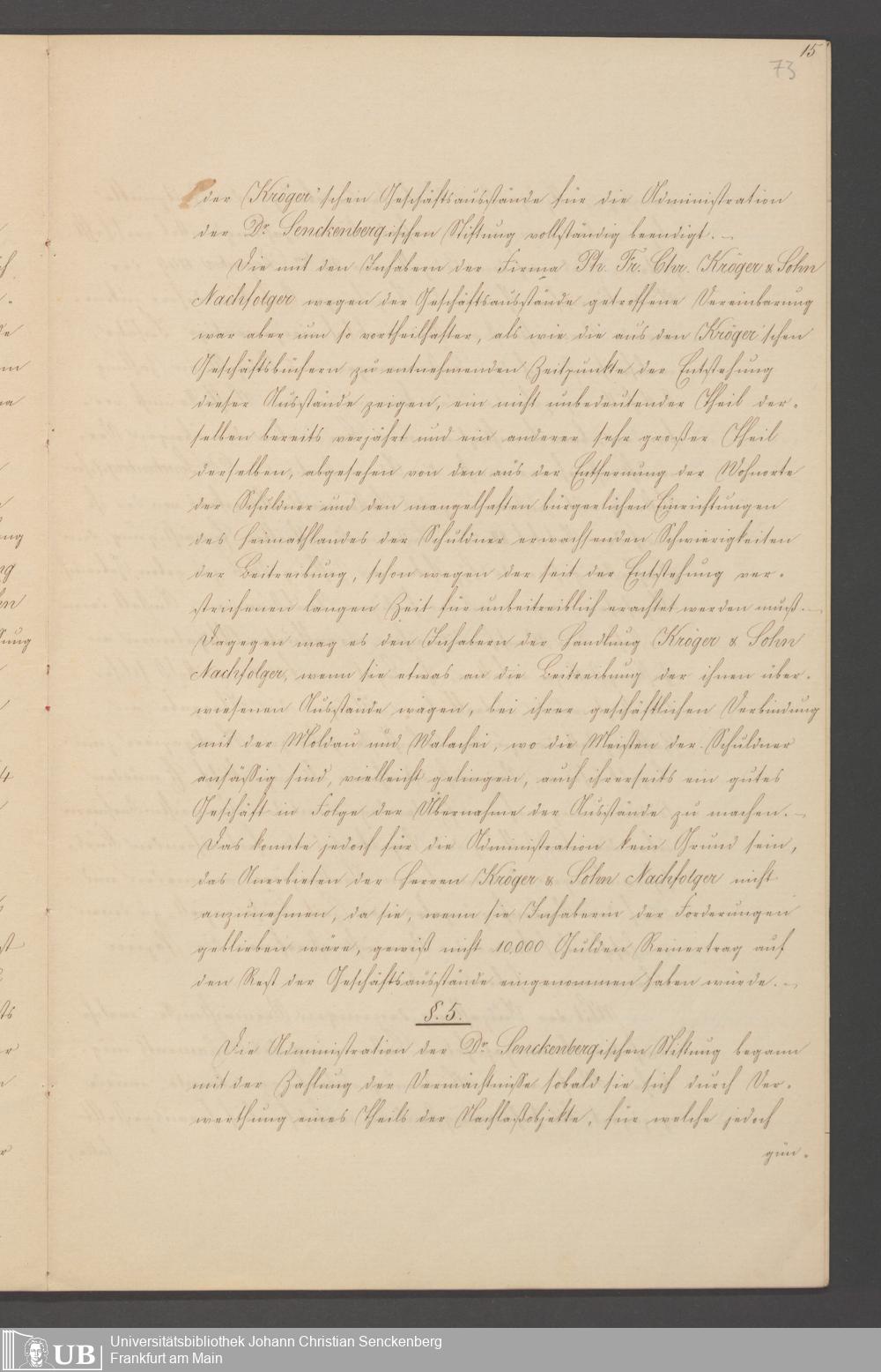 B 5 Dr. Senckenbergische Stiftung, 100 - Testament Philipp Franz Christian Kröger