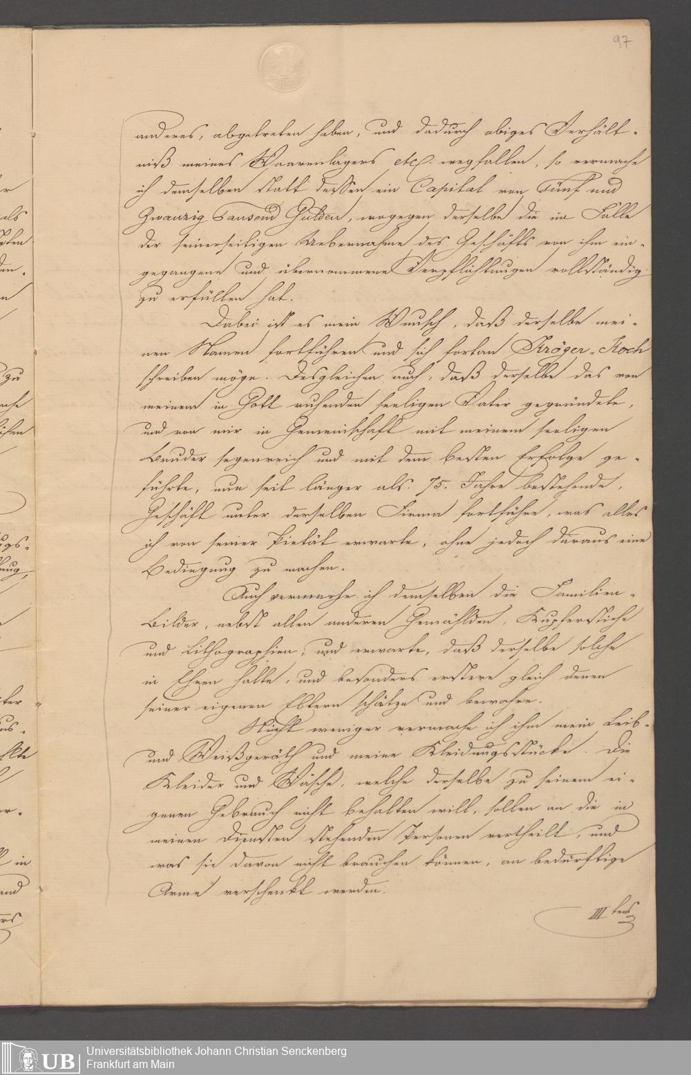 B 5 Dr. Senckenbergische Stiftung, 100 - Testament Philipp Franz Christian Kröger