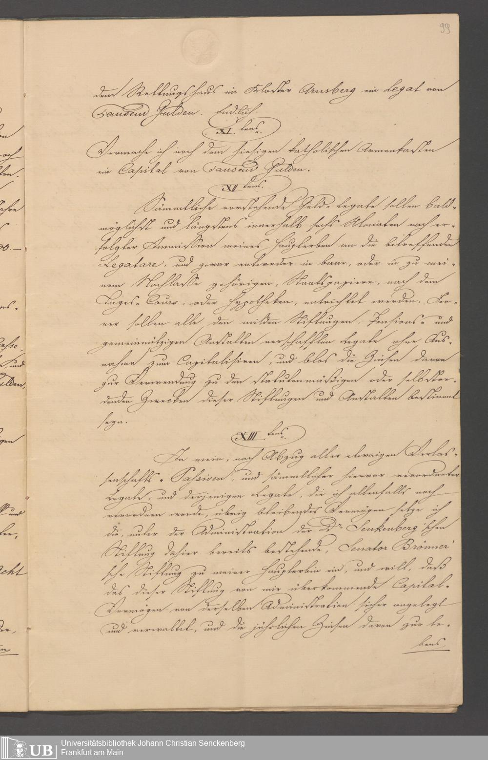 B 5 Dr. Senckenbergische Stiftung, 100 - Testament Philipp Franz Christian Kröger