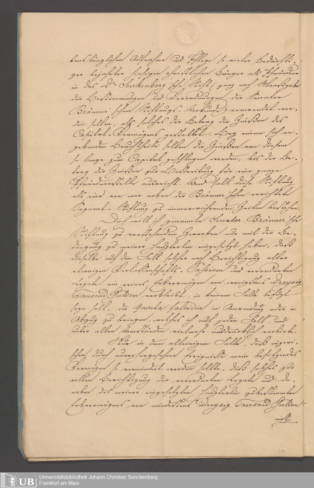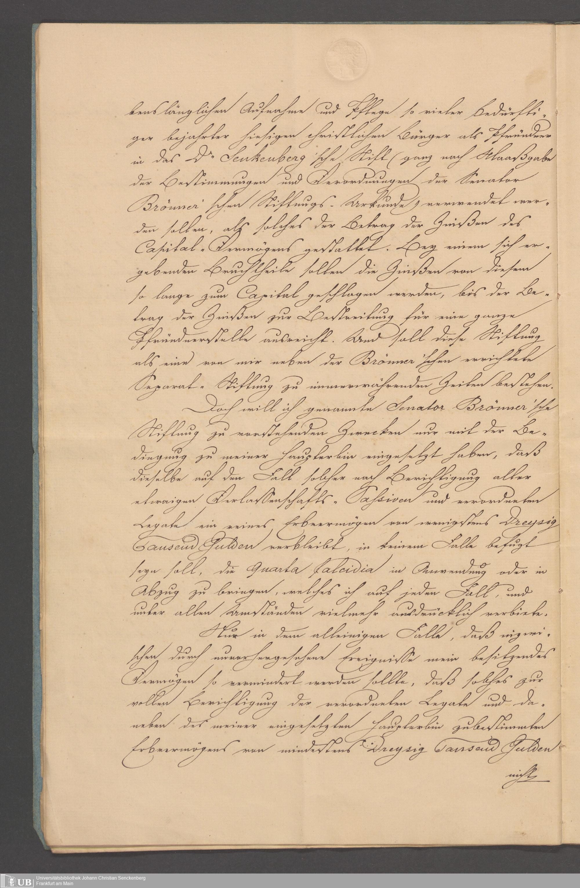 B 5 Dr. Senckenbergische Stiftung, 100 - Testament Philipp Franz Christian Kröger